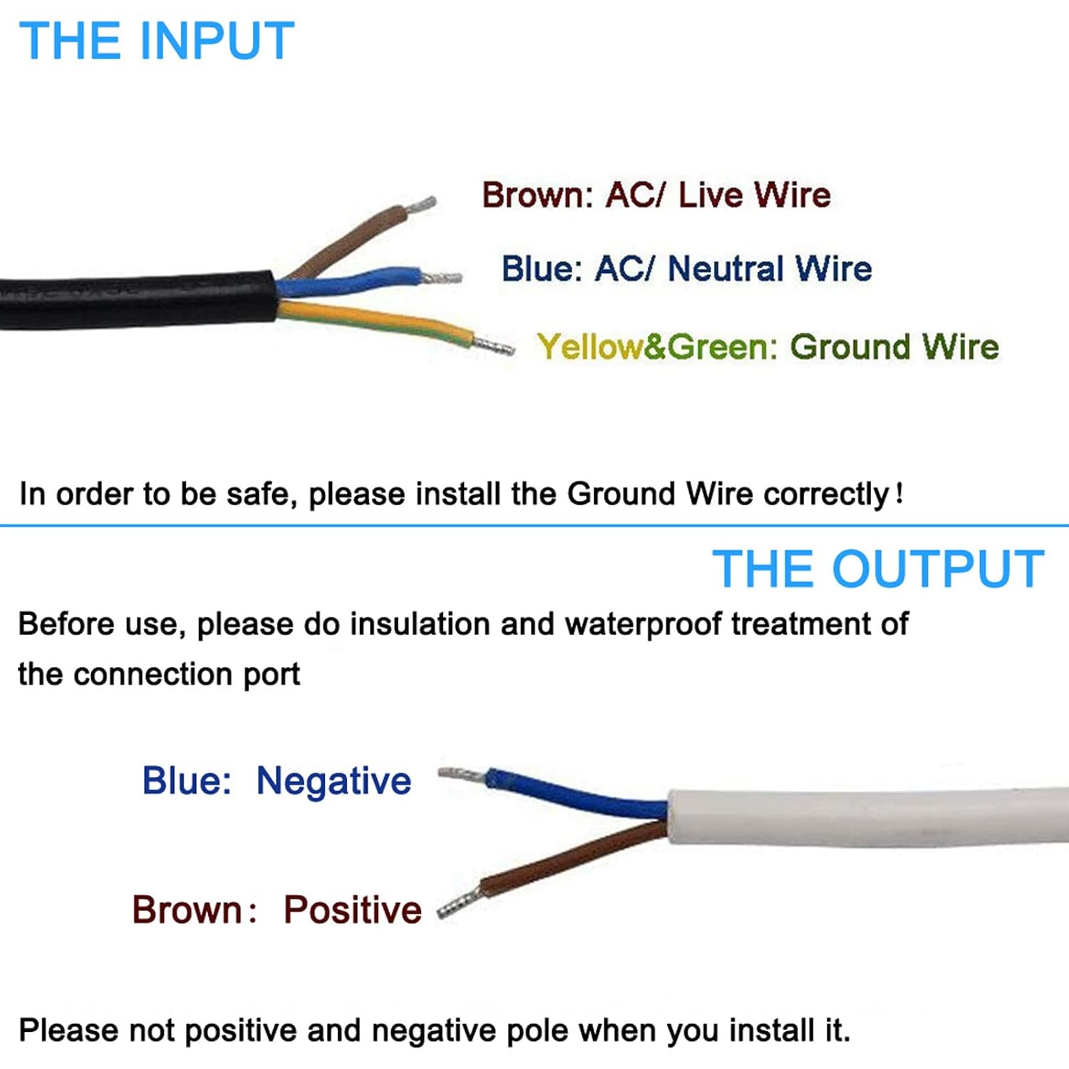 - Hochwertiges Material: Hergestellt aus Aluminiumgehäuse und hochwertigen Bauteilen, robust und langlebig, schützt vor Regenwasser. Mit einem schwarzen Kabel am AC-Eingang an einem Ende und zwei schwarzen Kabeln am DC-Ausgang am anderen Ende.