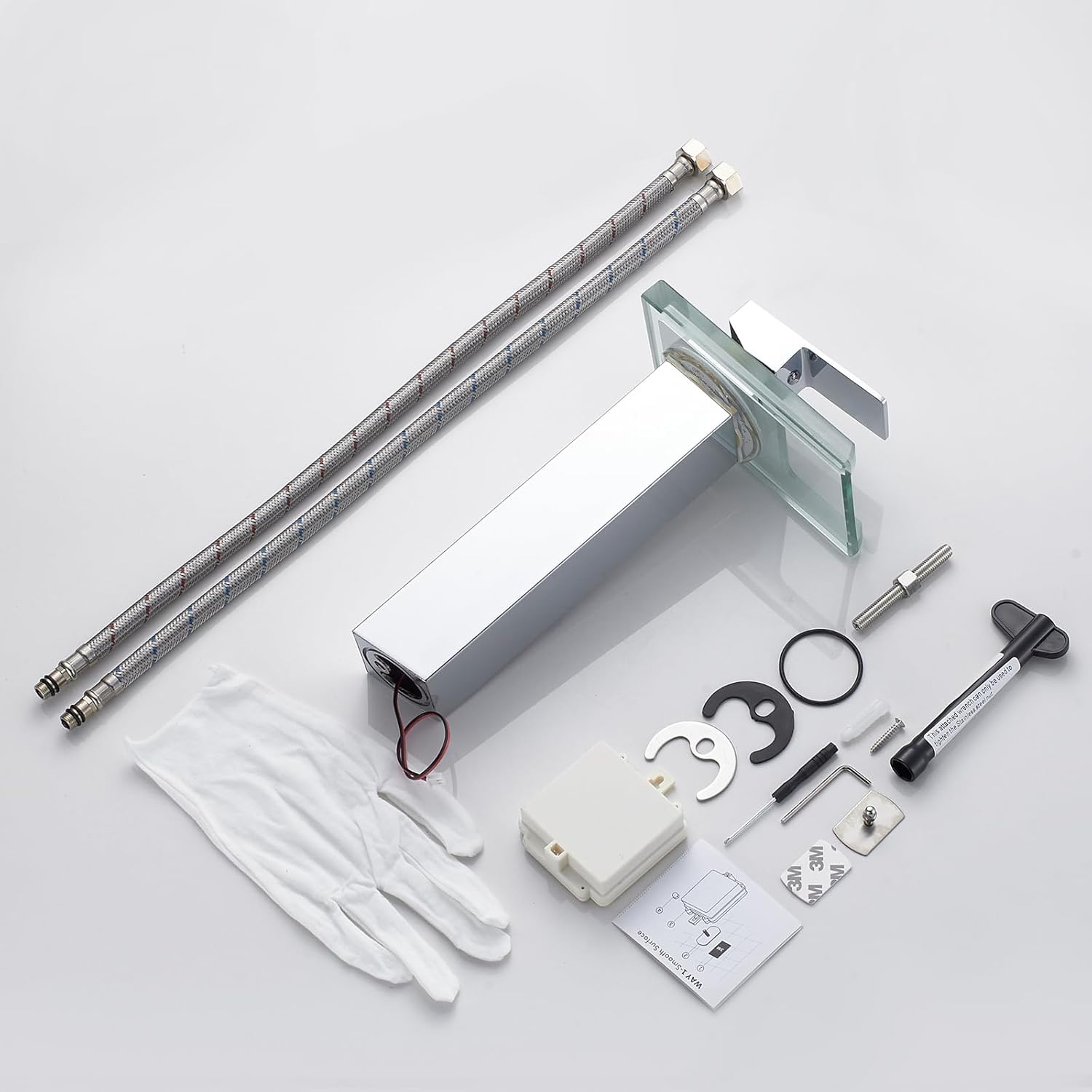 - 【EINZELGRIFFSTEUERUNG】Dieser Wasserfall Waschbecken Armatur verfügt über eine Einhebelsteuerung, mit der eine Hand den Durchfluss von heissem und kaltem Wasser und Wasser steuern kann. Geeignet für Durchlauferhitzer (geschlossene