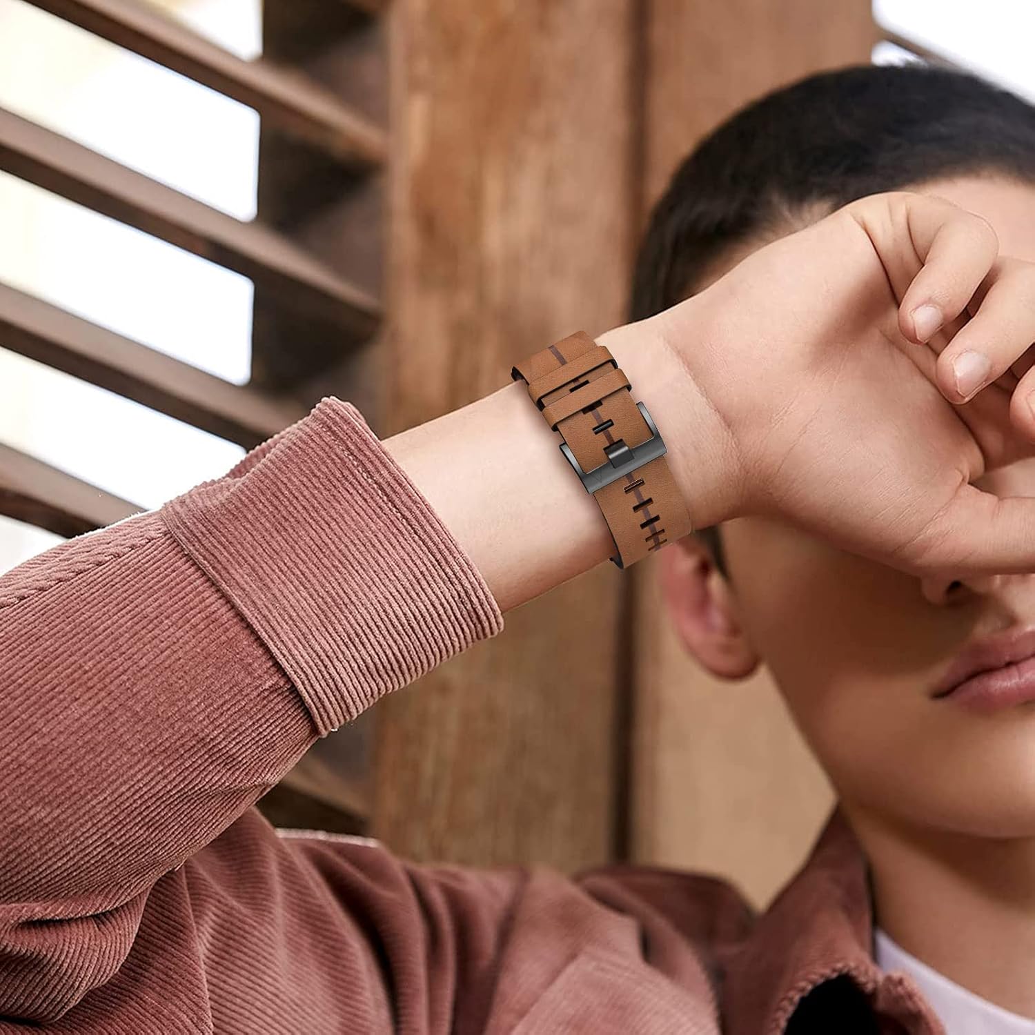 Leder Armband für Garmin Fenix 7, 22mm Echte Leder Ersatzarmband Quick-Fit Uhrenarmband für Fenix 6,