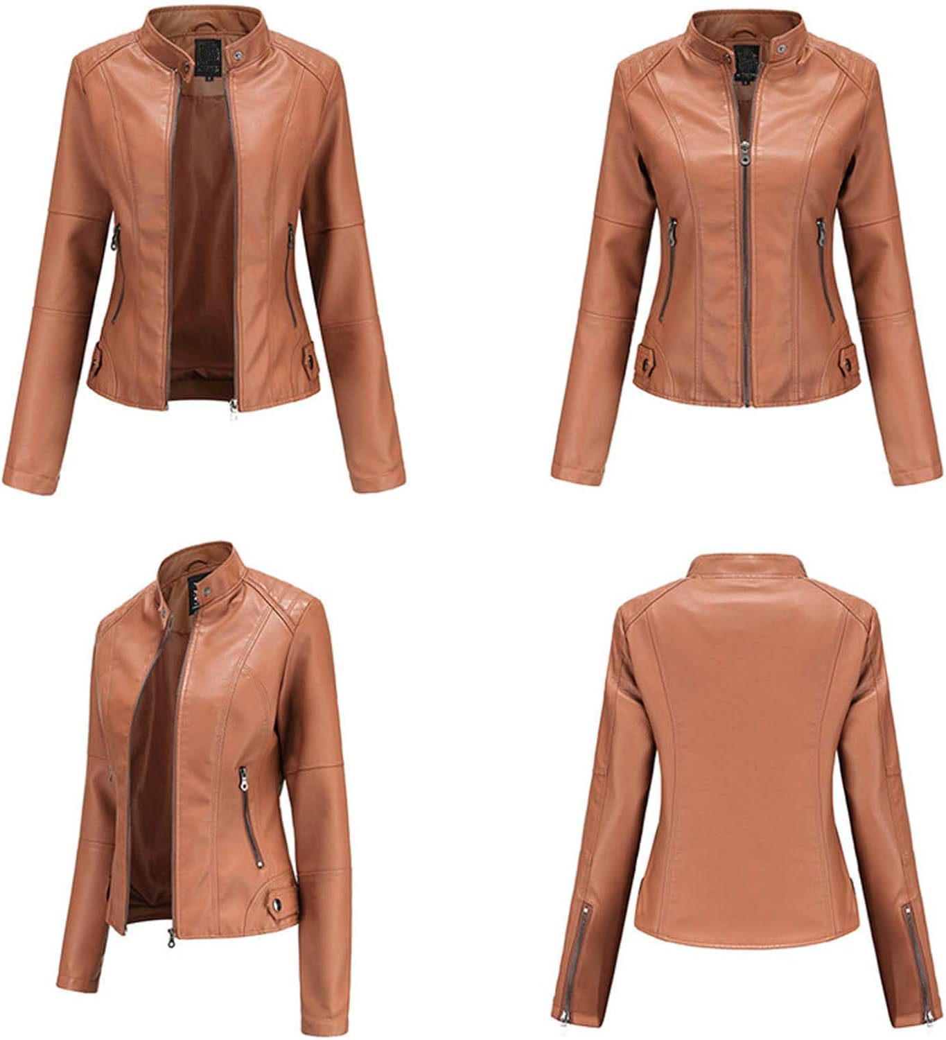 Lederimitat Jacke Damen & Lederjacke Schwarz Lang Braun Bomberjacke Motorradjacke Pu Leather Kurz Ou