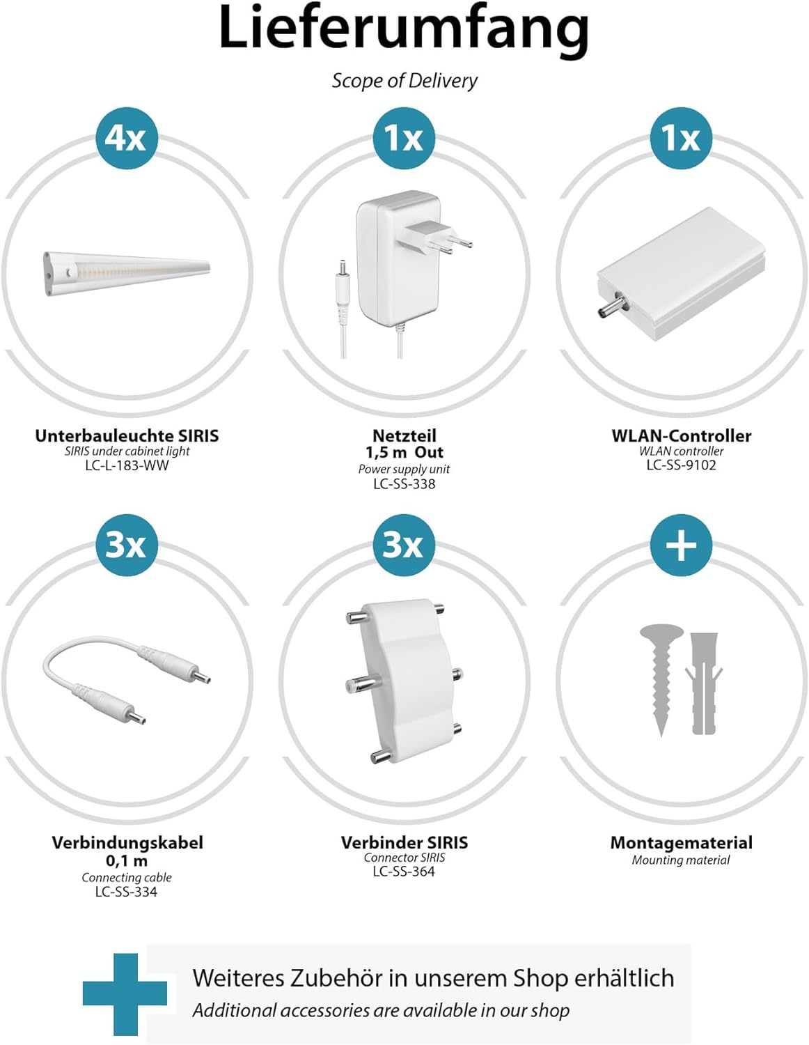 - Inklusive Wifi-Dimmer, der mittels App oder Alexa-Sprachsteuerung bedient werden kann.