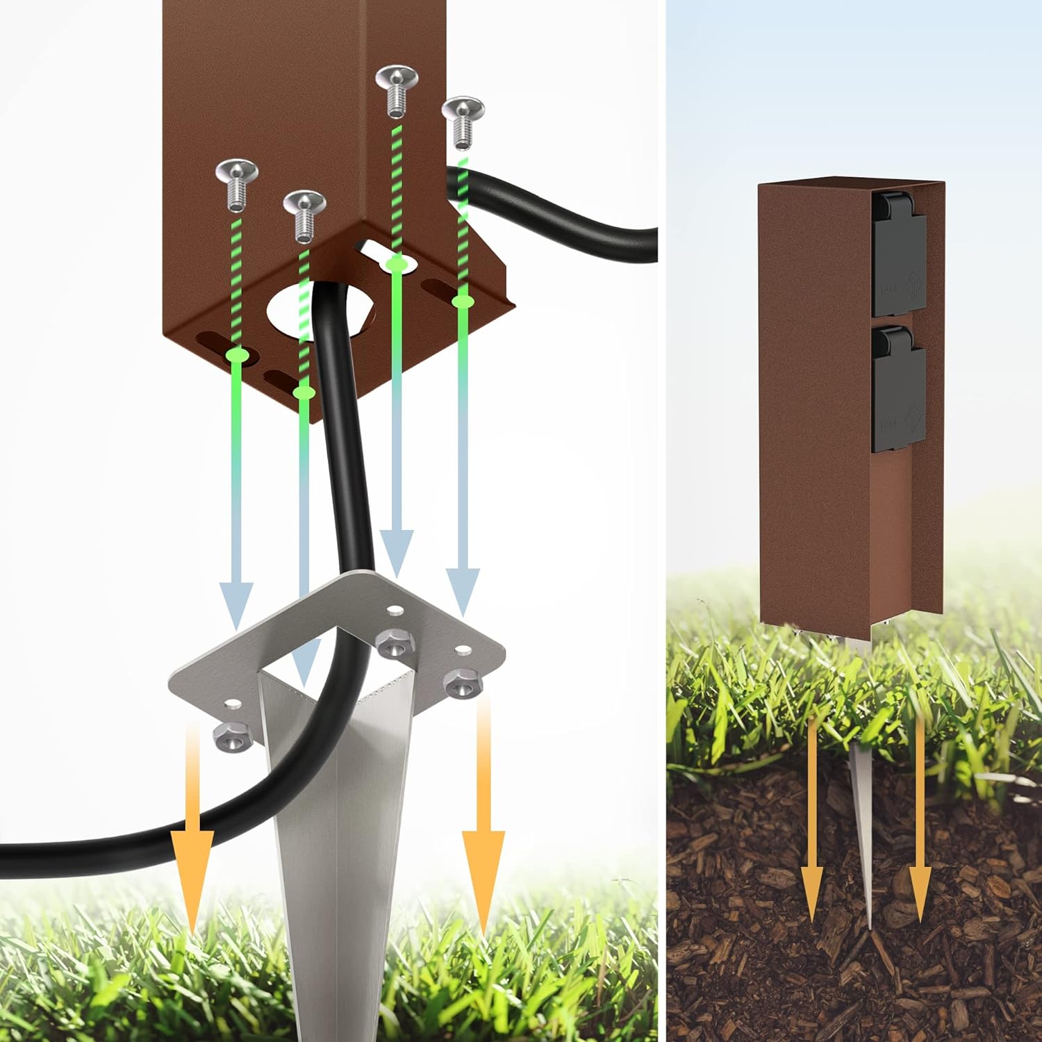 - Lieferumfang: 3 Sets bestehend aus jeweils: Garten-Steckdosen-Säule, Erdspiess, Schrauben, Dübel