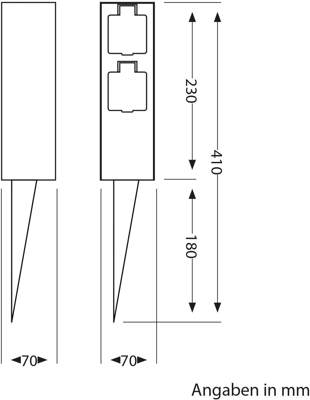 - Inkl. 230V Anschlussdose im Inneren der Säule zur wassergeschützten Installation der Zuleitung