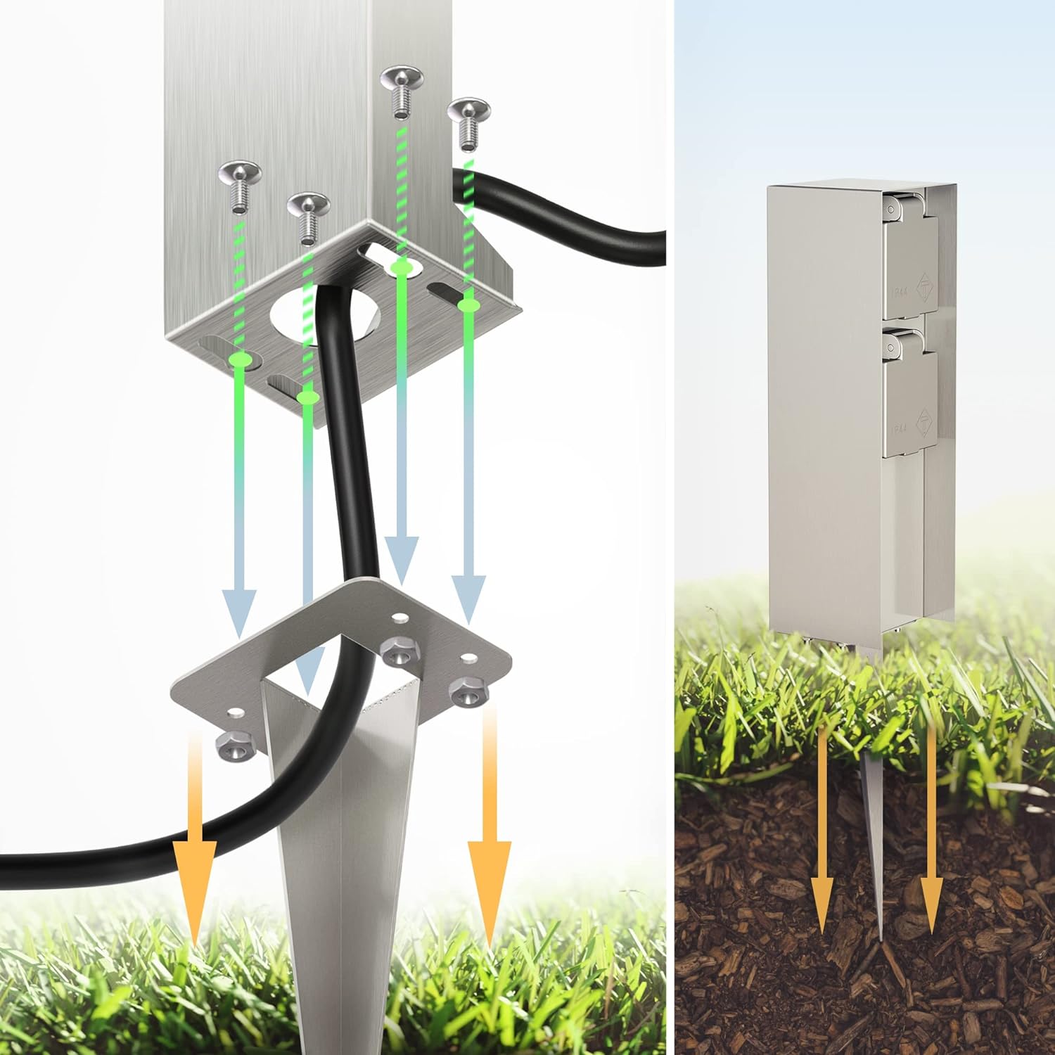 - Lieferumfang: 3 Sets bestehend aus jeweils: Garten-Steckdosen-Säule, Erdspiess, Schrauben, Dübel