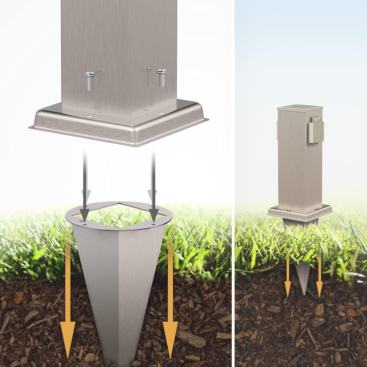 - [Zusätzliche Flexibilität] - Sie möchten die Säule lieber an einen anderen Ort installieren? Kein Problem! Einfach den Erdspiess aus dem Boden ziehen und anderenorts in der Erde verankern.