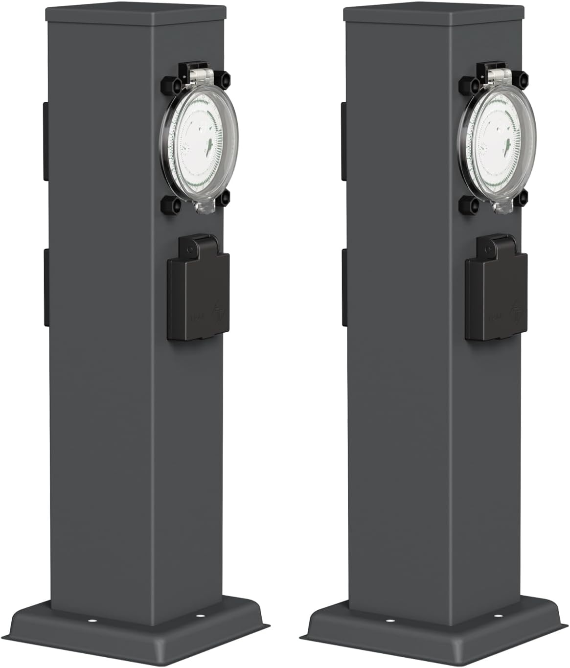- [Stilvolle Stromverteilung im Garten] - Die Garten-Steckdosen-Säule verfügt über 3 Steckdosen mit Klappdeckeln und bietet eine ansprechende Möglichkeit zur praktischen Stromverteilung im Aussenbereich. Ob für den Betrieb einer Lichterkette, des
