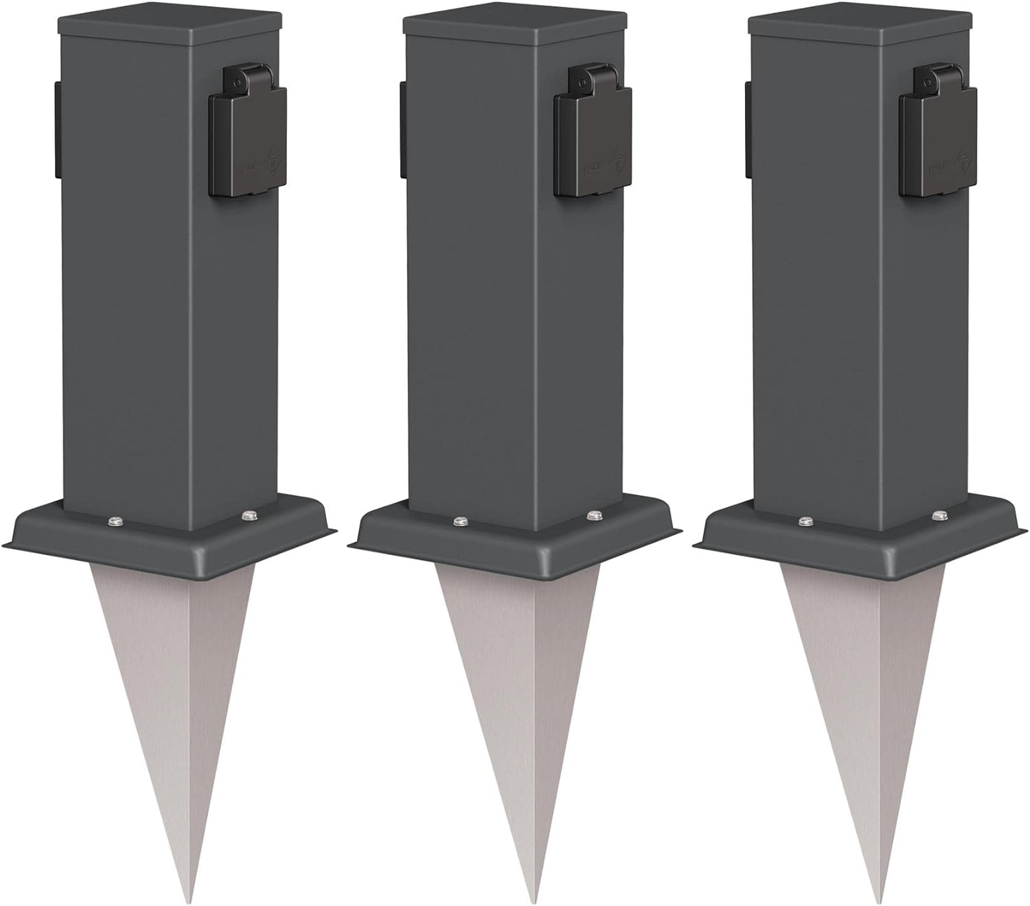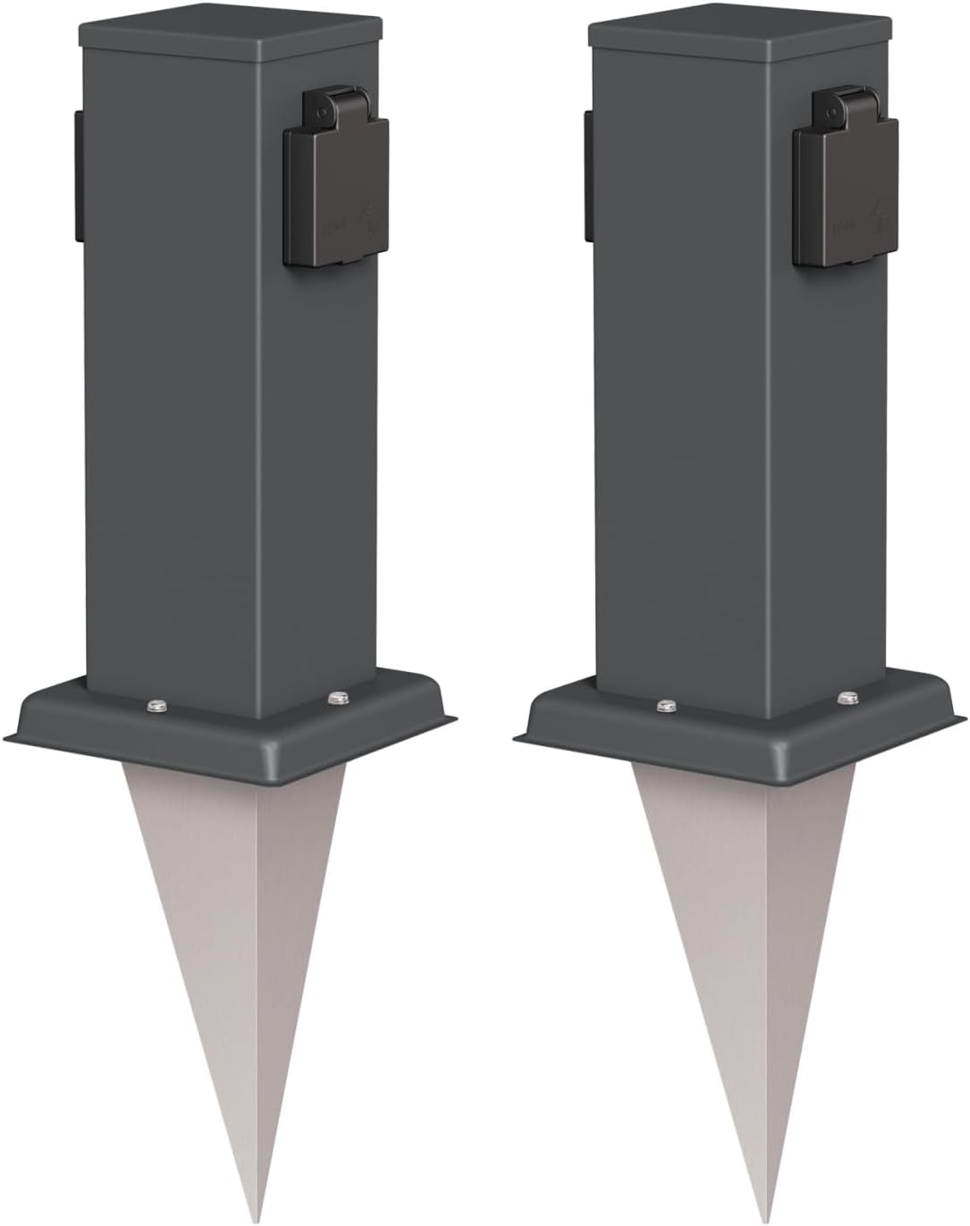 ledscom.de 2X Garten-Steckdosen-Säule Polly mit Erdspiess für aussen, IP44, 2-Fach, anthrazit, eckig