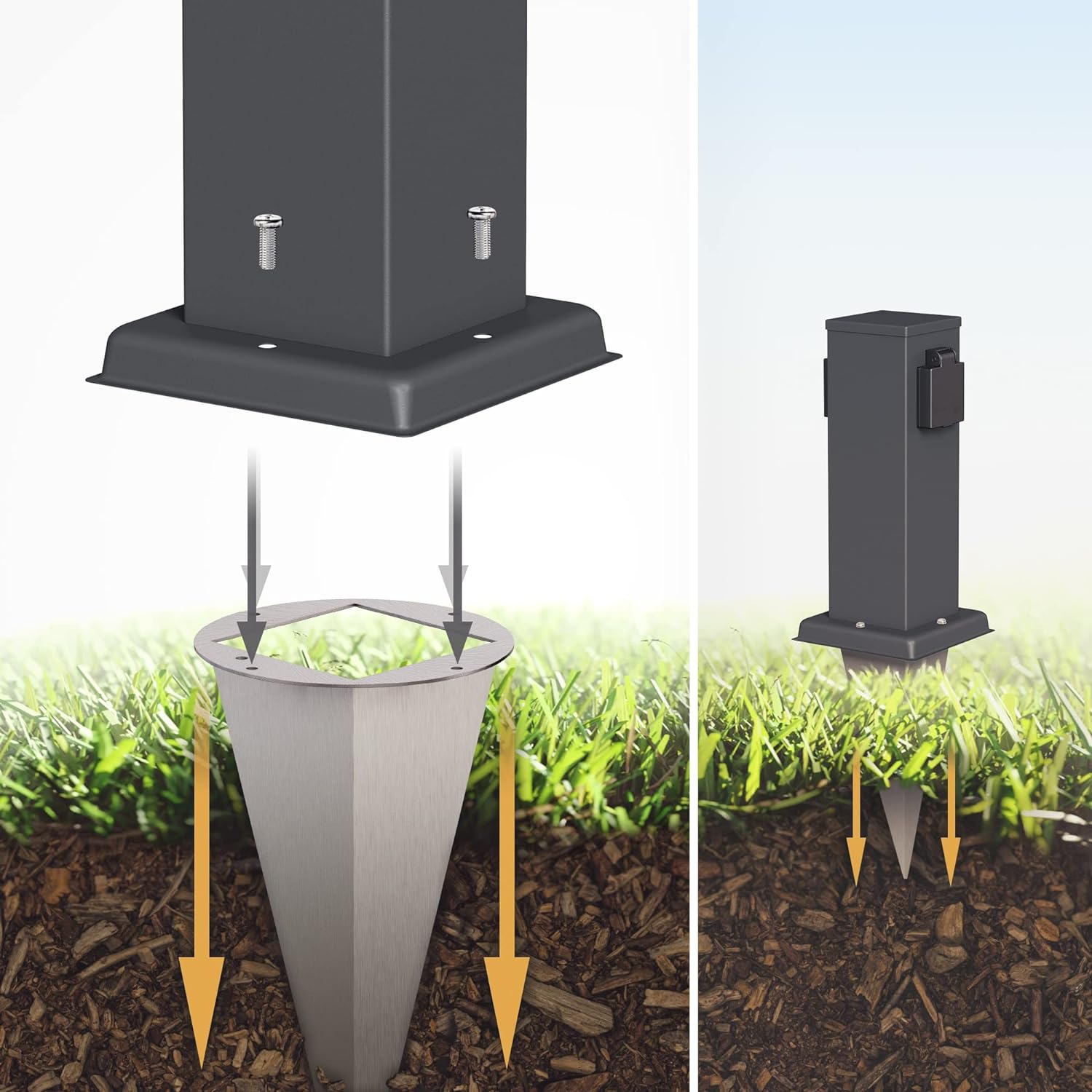 • [Zusätzliche Flexibilität] - Sie möchten die Säule lieber an einen anderen Ort installieren? Kein Problem! Einfach den Erdspiess aus dem Boden ziehen und anderenorts in der Erde verankern.