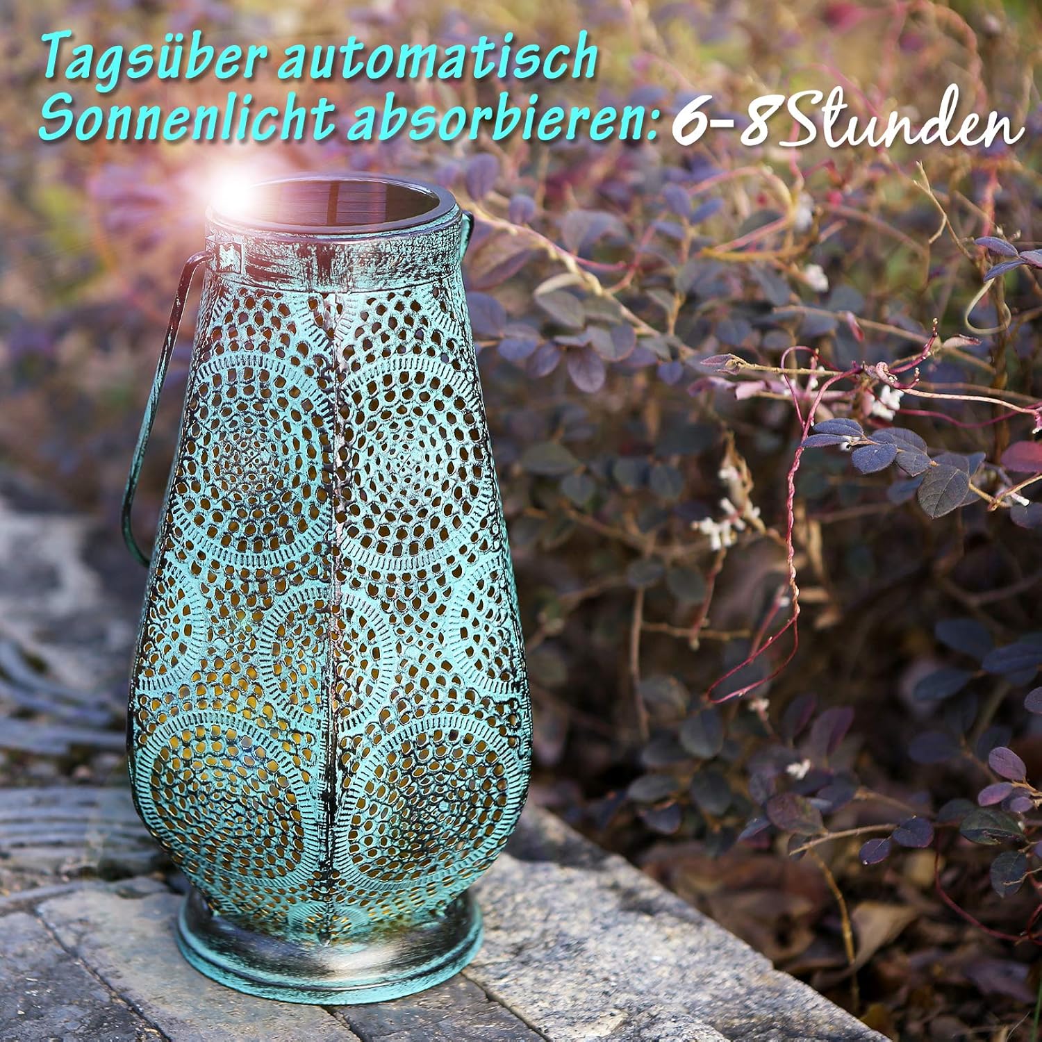 - 【Überlegene Qualität】 Die Solarlaterne für Aussen besteht aus starkem Metall, das den durch Regen verursachten Rost wirksam verhindern kann. Mit dem wasserdichten Solarpanel IP65 kann die Solar laterne für Aussen durch Sonnenbaden aufgeladen