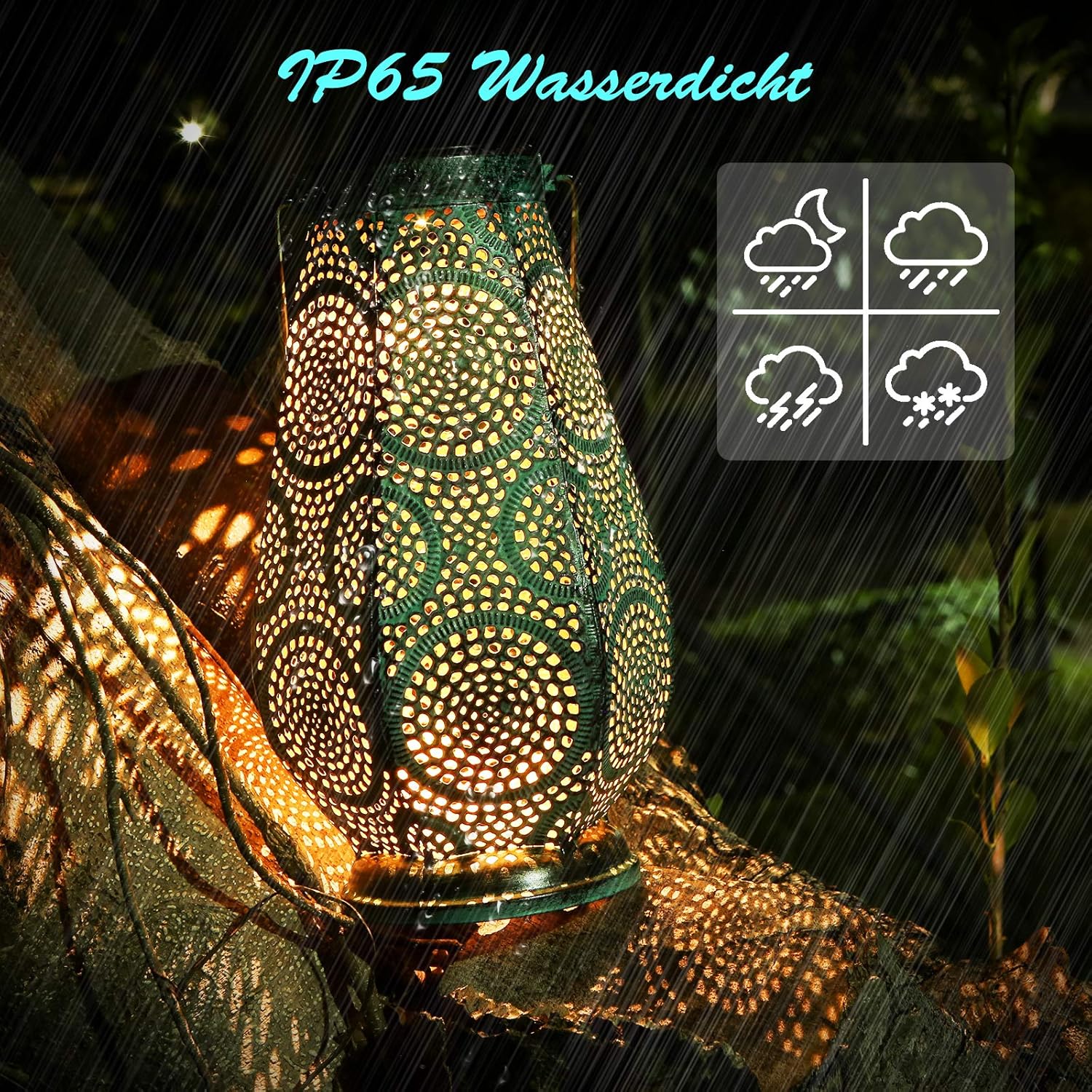 - 【IP65 Wasserdicht】 Das Solarlaterne für Aussen mit IP65 wasserdicht kann überall in Ihrem Garten als Dekoration platziert oder aufgehängt werden, sodass Sie sich keine Sorgen machen müssen, dass es durch Wind und Regen korrodiert.