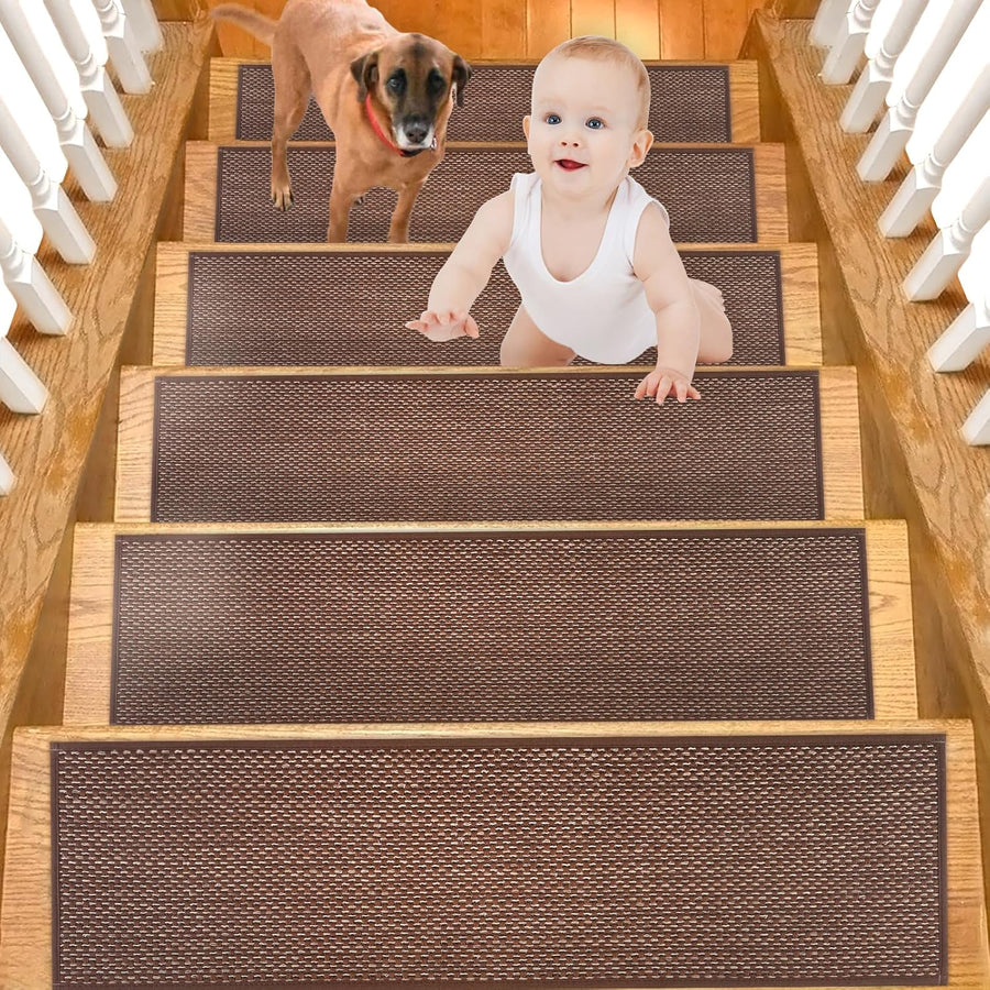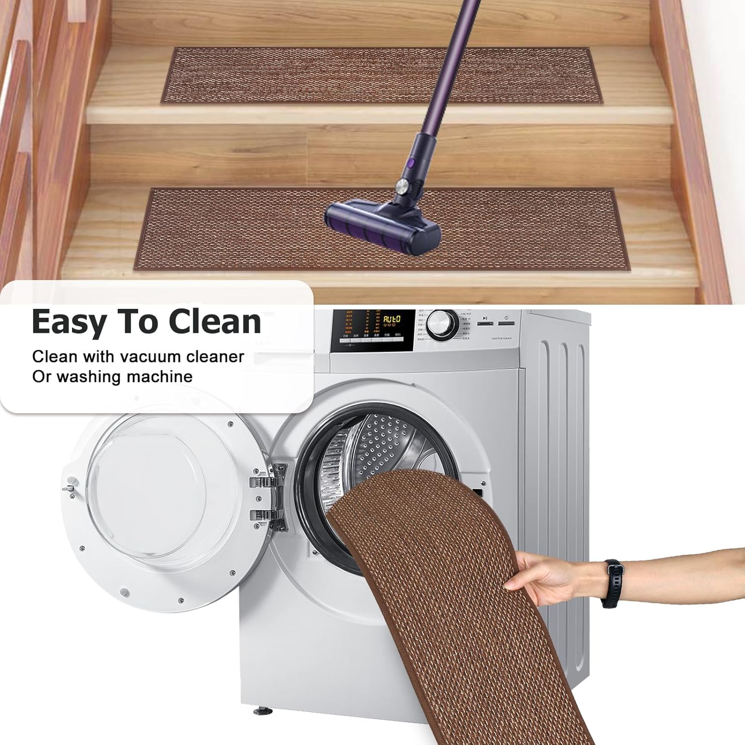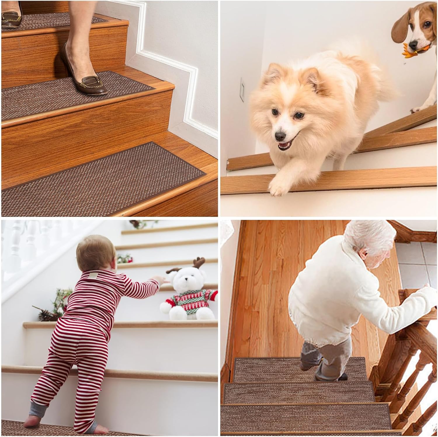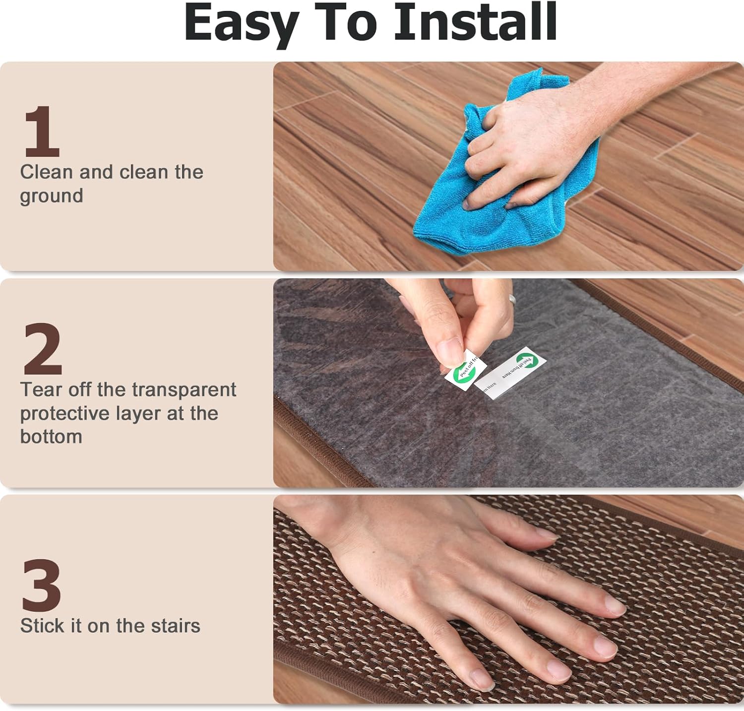 - 【Premium Material】- Die Stufenmatten besteht aus hochwertiges weiches Material. das die Reibung zwischen dem Fuss und der Treppenmatte erhöht, und mit dem Klebeband des Bodens kann Ihre Familie und Haustiere vollständig am Verrutschen verhindern.