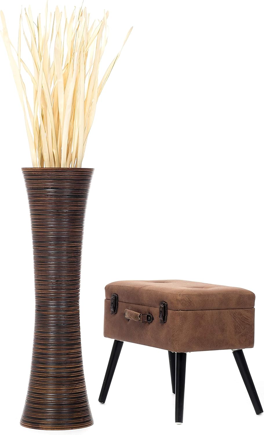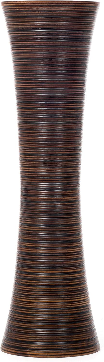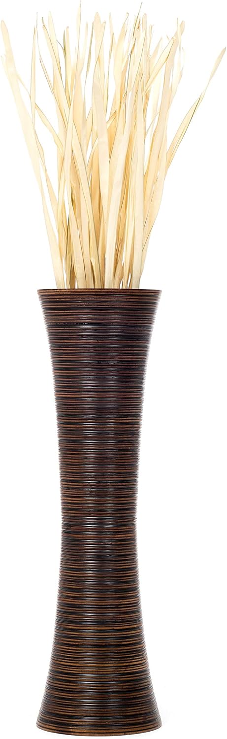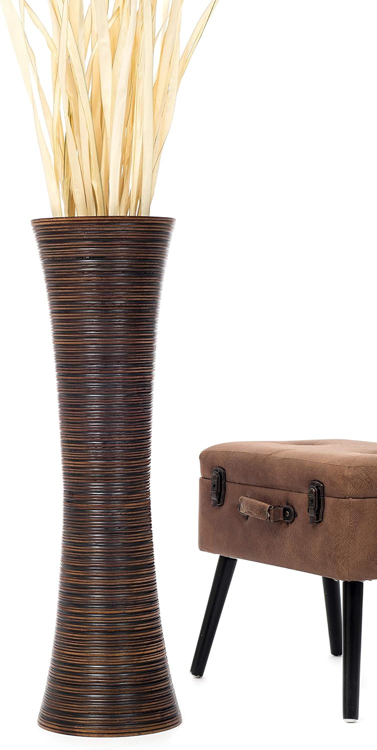 Leewadee Grosse Bodenvase für Dekozweige hohe Standvase Design Holzvase, Holz, 90 cm, braun 90 cm Br