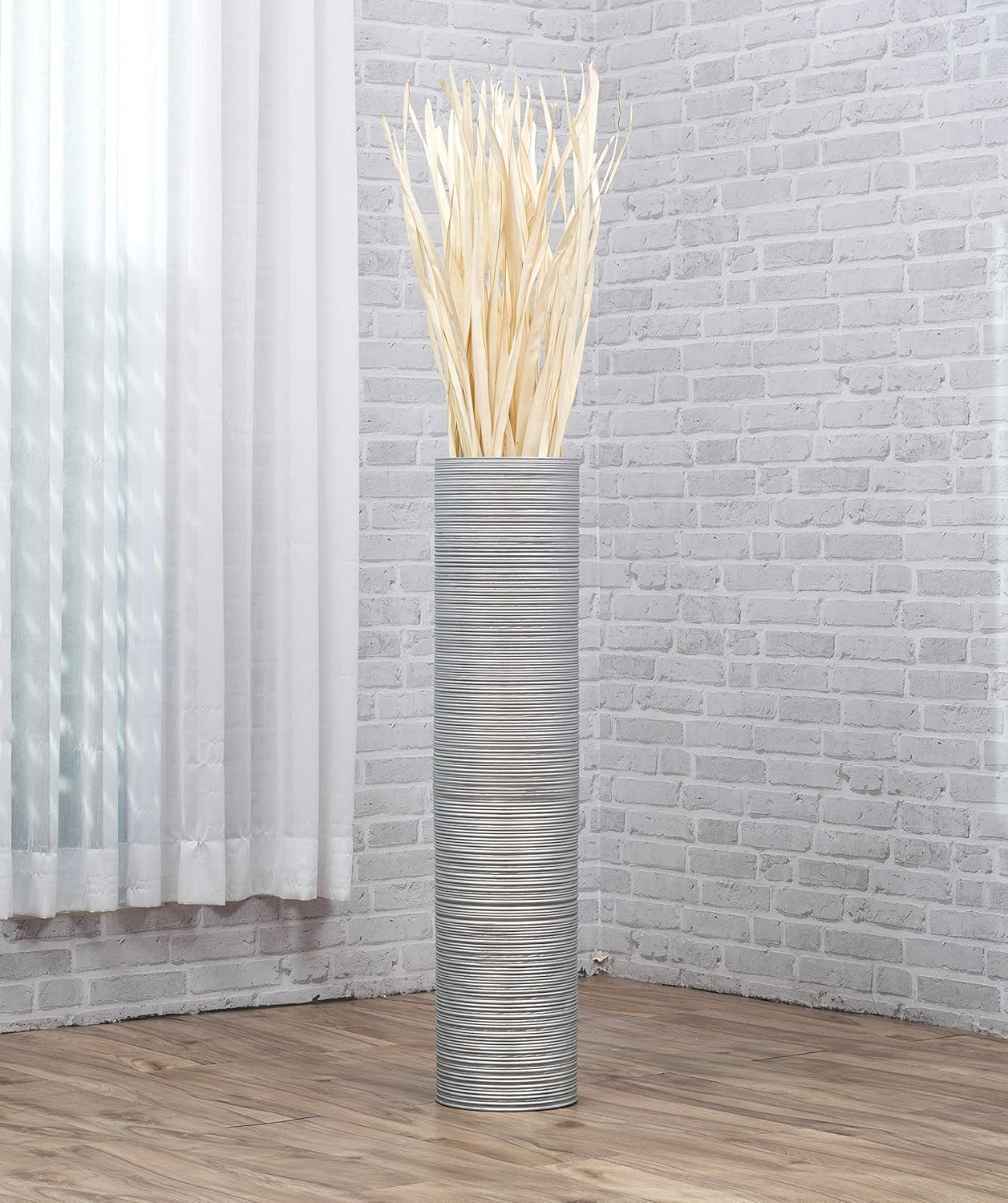 - Höhe: 90 cm; Vasenöffnung: 16.5 cm; Farbe: silber