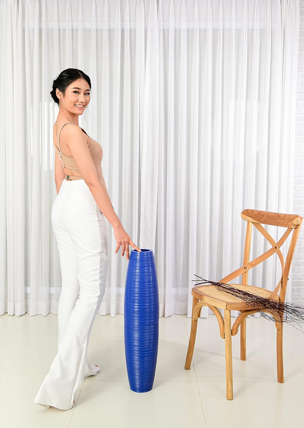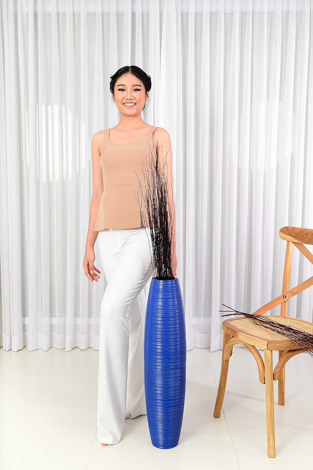 - Höhe: 70 cm; Vasenöffnung: 10 cm; Farbe: blau
