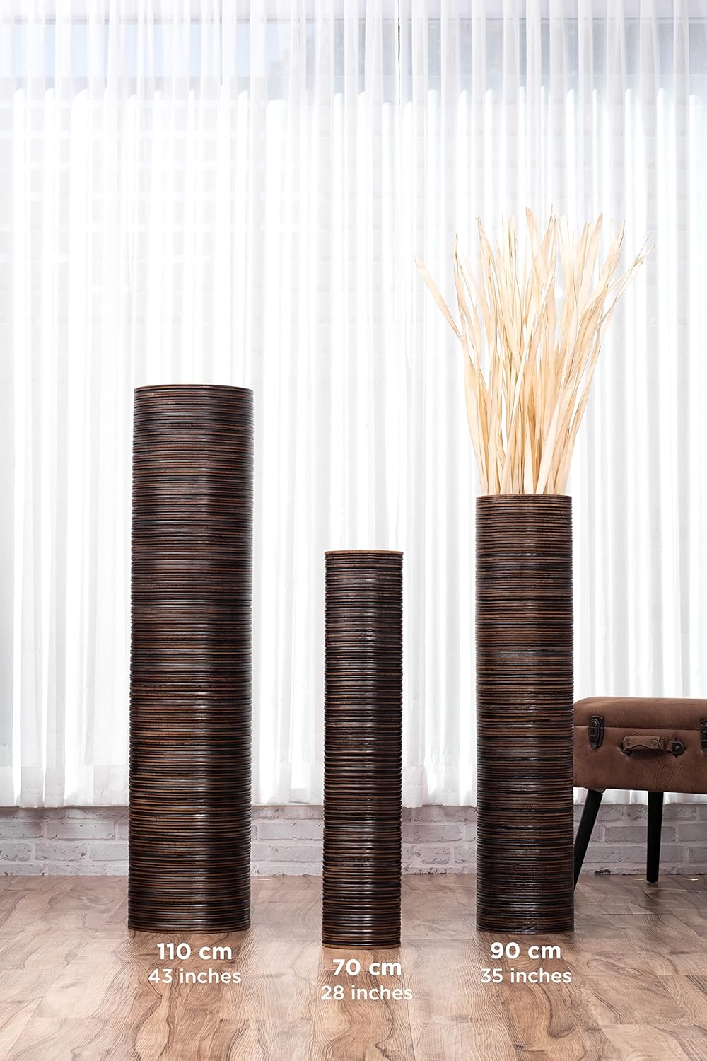 - Höhe: 90 cm; Vasenöffnung: 16.5 cm; Farbe: braun