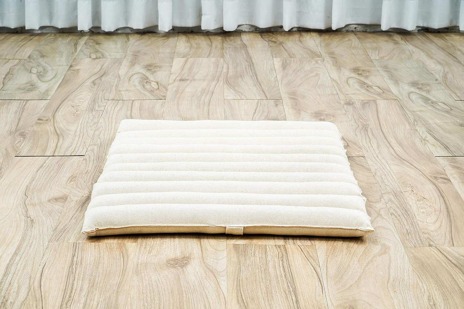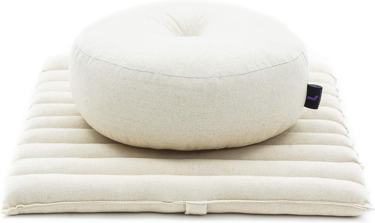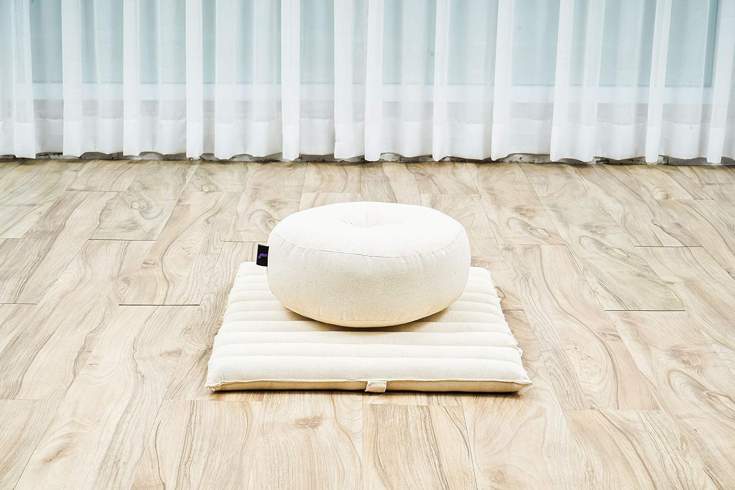 - Mass Zafu Meditationskissen Rund (BxH): 30 x 30 x 13 cm; Mass Zabuton Bodenkissen (rechteckig - BxTxH): 50 x 50 cm; Material: Baumwolle; Farbe: natur