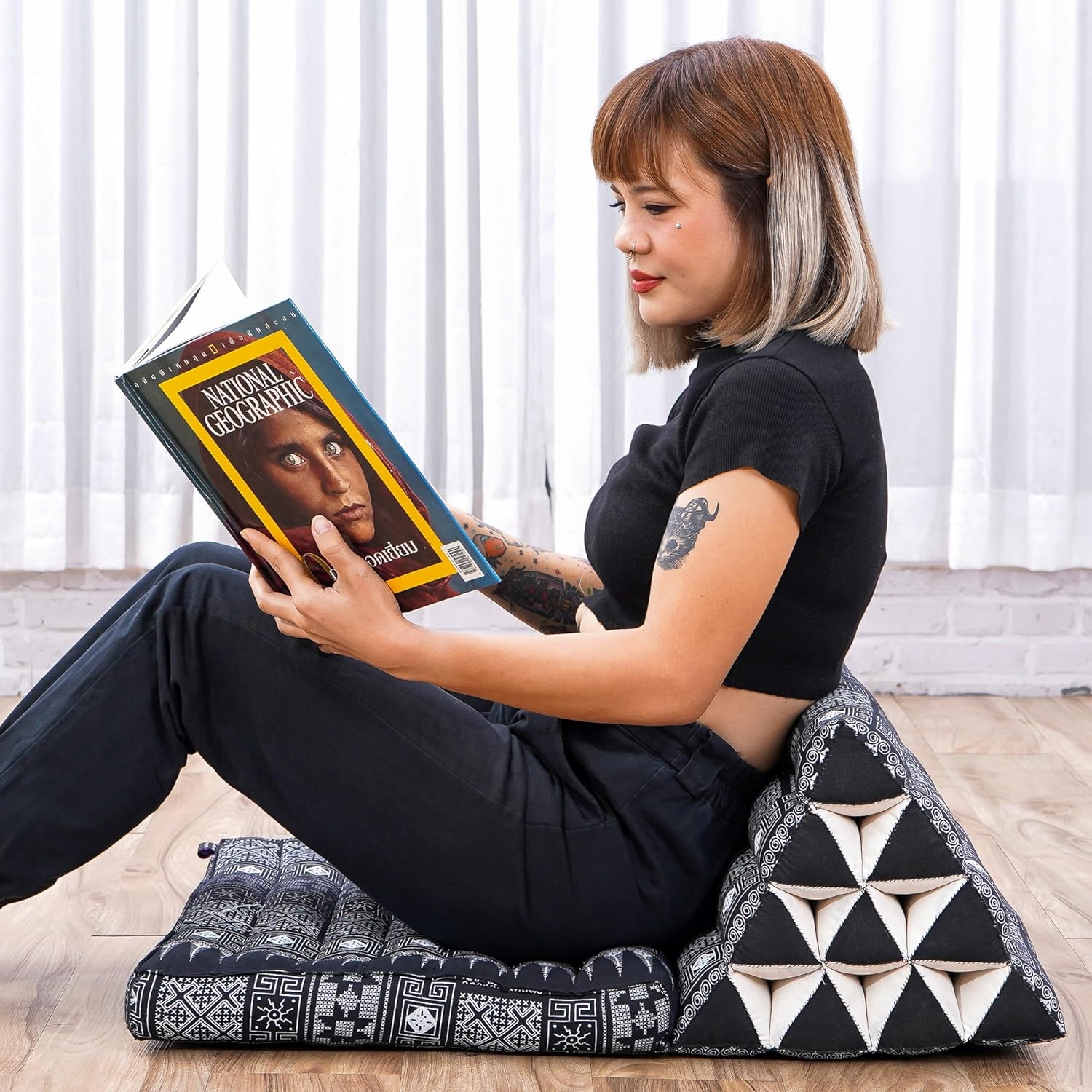 - Thai-ländische Dreiecks-Matte mit Rücken-Stützkissen und 1 klappbare Auflage. Das asia-tisch Relax-Kissen kann indoor als Fernseh-Kissen oder Lese-Kissen bzw- Lese-Keil verwendet werden