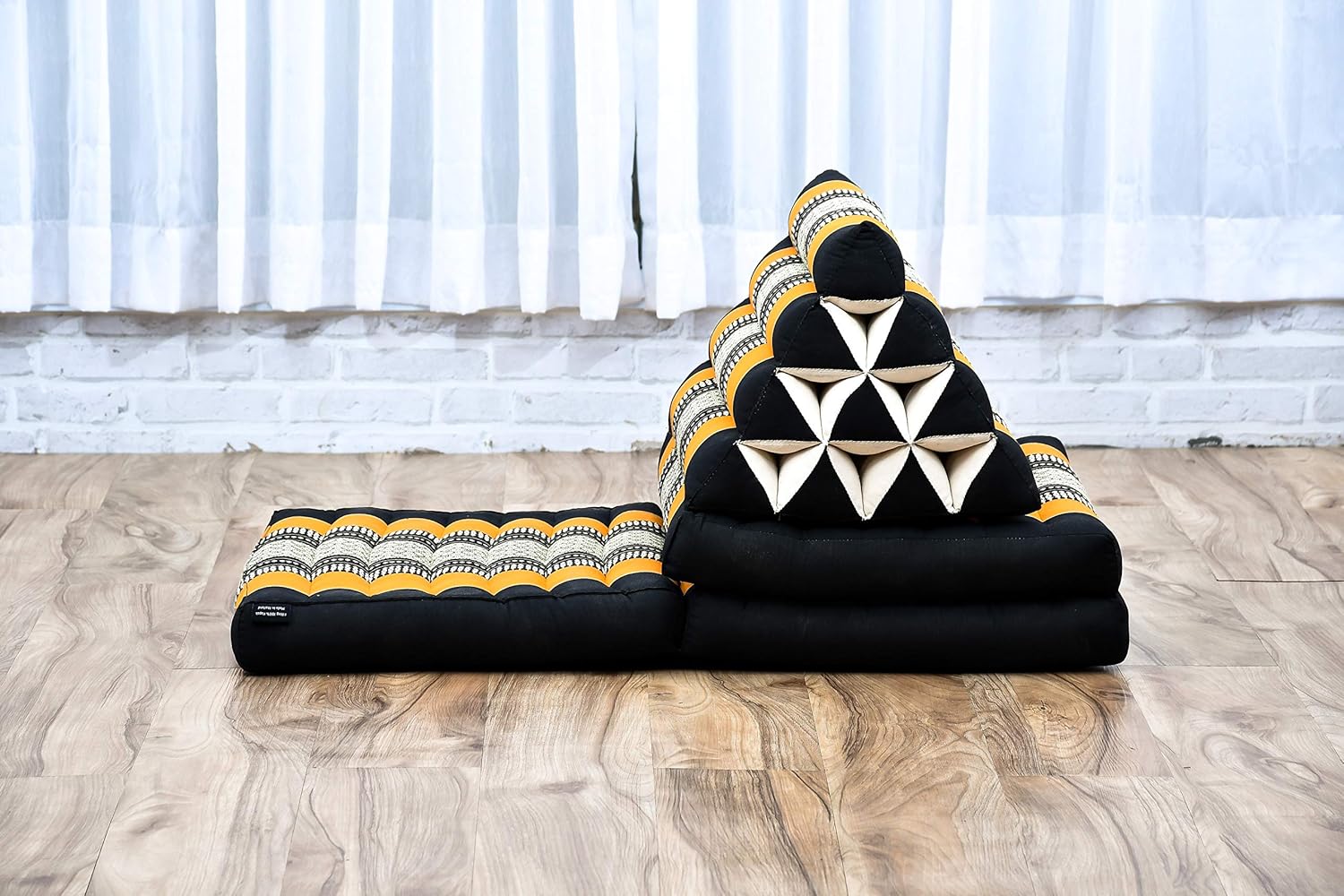 - Thai-ländische Dreiecks-Matte mit Rücken-Stützkissen und 3 klappbaren Auflagen. Das asia-tisch Relax-Kissen kann indoor als Fernseh-Kissen oder Lese-Kissen bzw- Lese-Keil verwendet werden