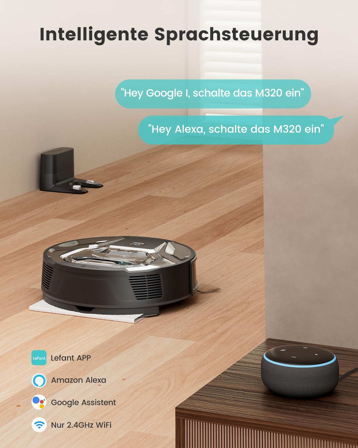 - 【Intelligente App & Sprachsteuerung】 Sie werden die geplante Reinigung lieben. Sie stellen einen bestimmten Zeitplan und die Art der Reinigung über die Lefant App ein. Der Saugroboter erledigt dann den Rest. Ihr Haus ist bereits gereinigt, wenn Sie