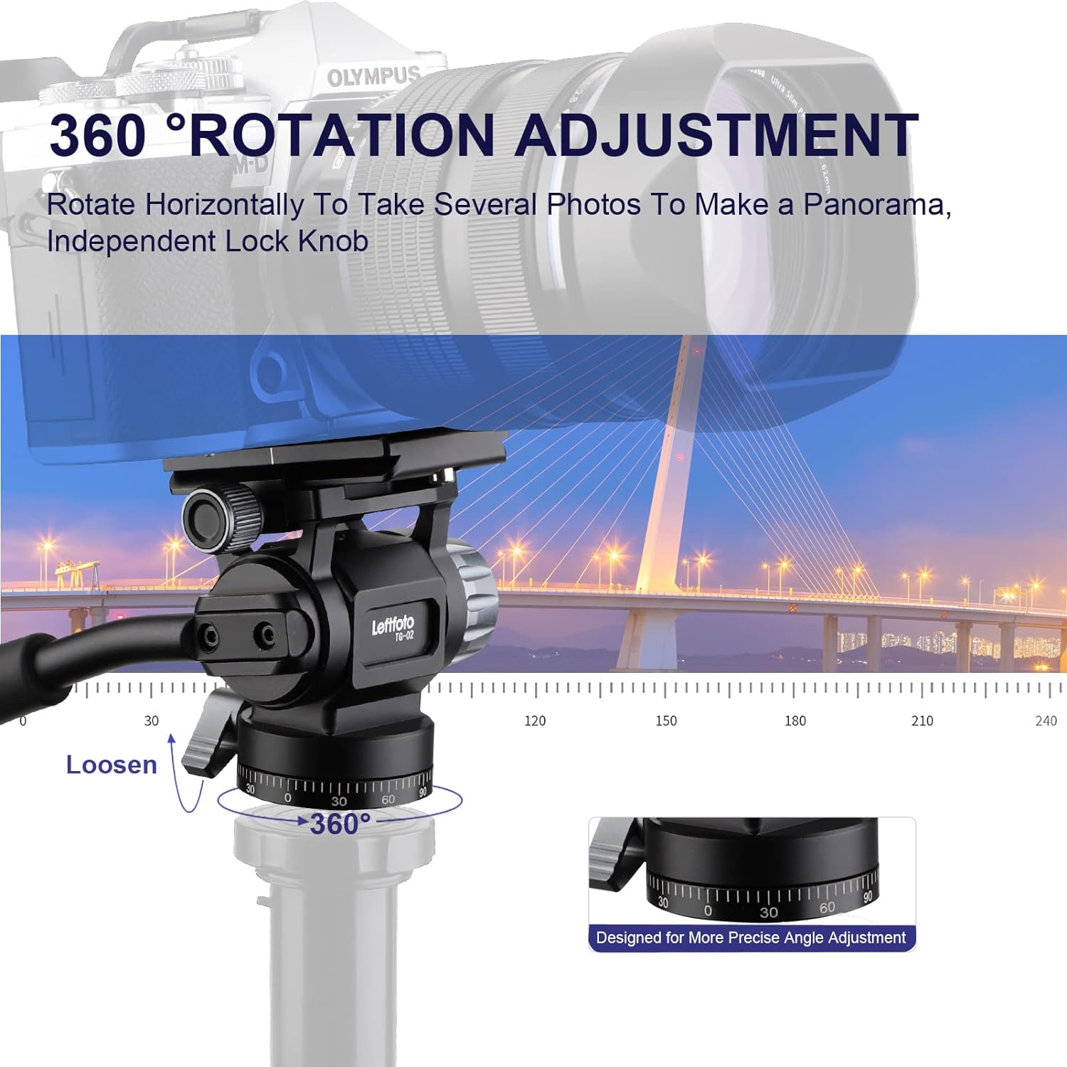 • 【Glatte Dämpfung】Professionelles hydraulisches, seidig verstellbares Dämpfungssystem. Dieser Stativkopf kann um +90 °/-80 ° geneigt und um 360 ° geschwenkt werden und bietet Aufnahmen in mehreren Winkeln für flüssige Aufnahmen