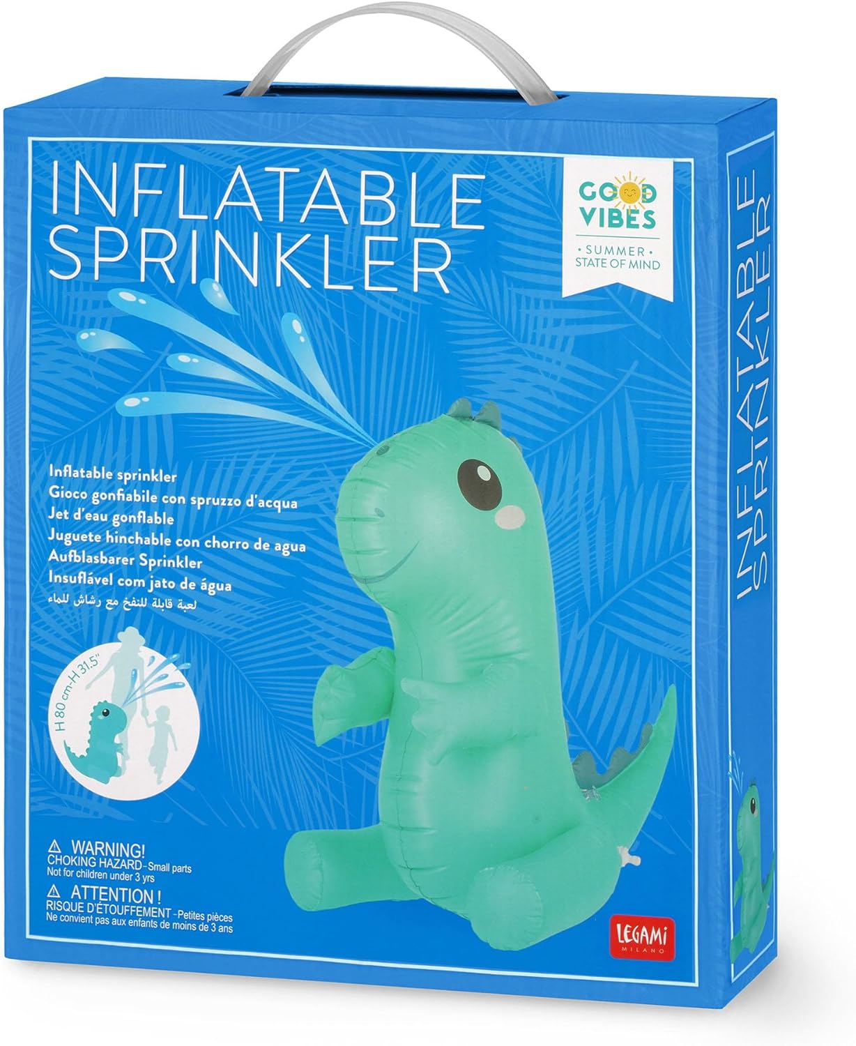 - Nasse Sommer, glücklicher Sommer: Werden Sie zum Wasser-Experte mit dem aufblasbaren Spiel mit Wasserspray Dino von Legami! Viel Spass mit Ihren Kindern: einfach den Adapter an den Wasserschlauch anschliessen, den Wasserhahn öffnen und fertig. Ihr