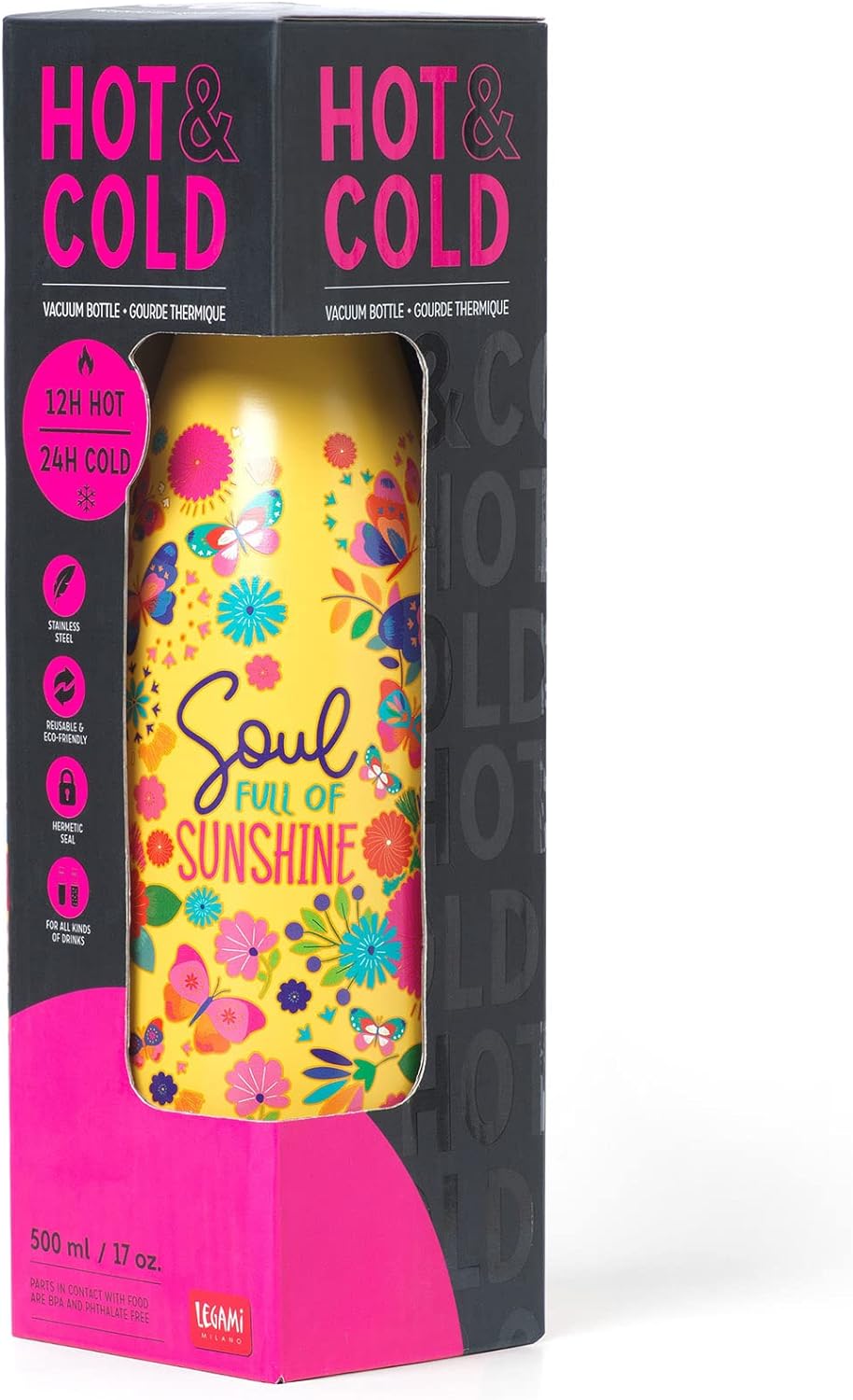 - BESCHREIBUNG: Hot&Cold Butterfly ist die 500 ml Thermoflasche von Legami. Hält kalte Getränke (24 h) und heisse Getränke (12 Stunden). Und dann schonen wir uns auch die Umwelt - aus Edelstahl setzt sich entschlossen gegen Plastikflaschen ab.