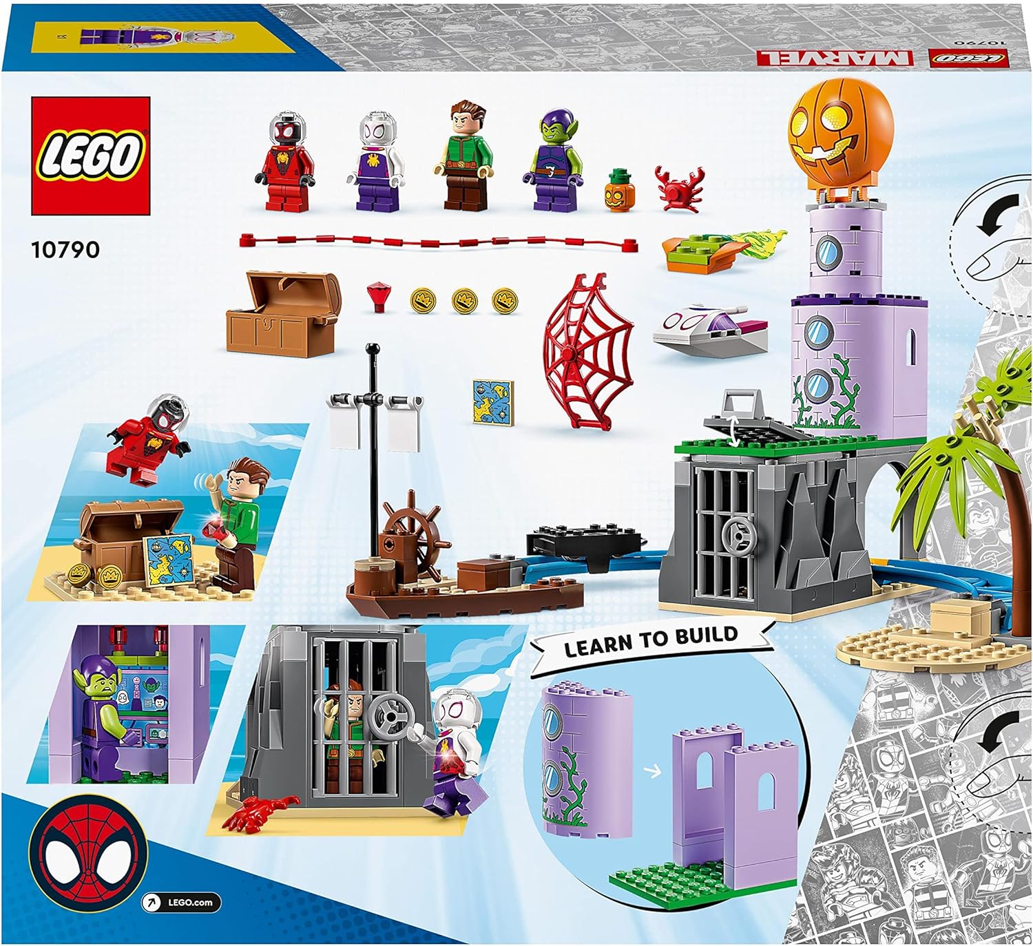 LEGO 10790 Marvel Spideys Team an Green Goblins Leuchtturm, Spielzeug für Kinder ab 4 Jahren mit Pir