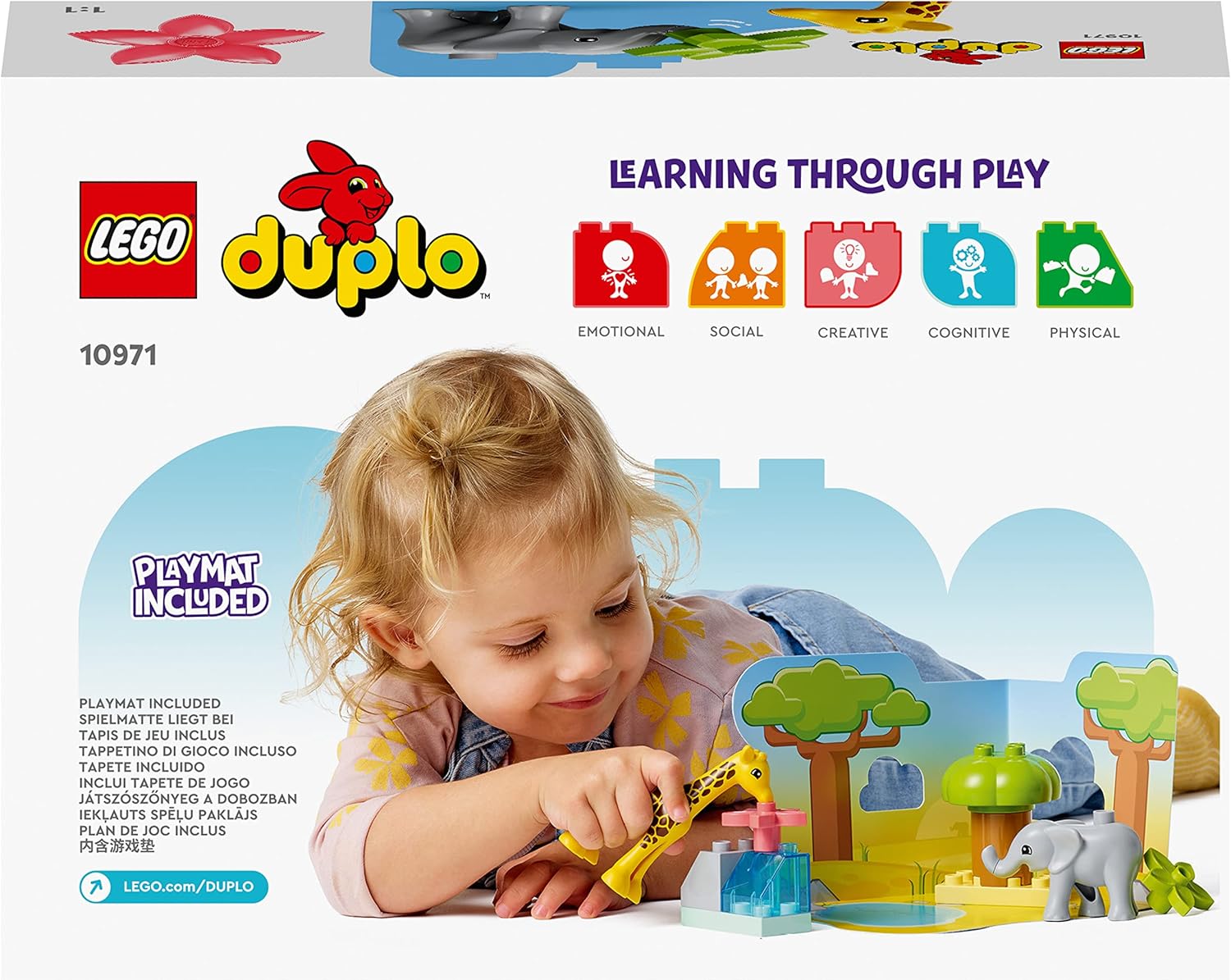 - Dieses LEGO DUPLO Tierspielzeug-Set führt Kleinkinder in die entzückenden Tiere Afrikas mit vielen Abenteuern ein, die sie auf einer Waldspielmatte erkunden können