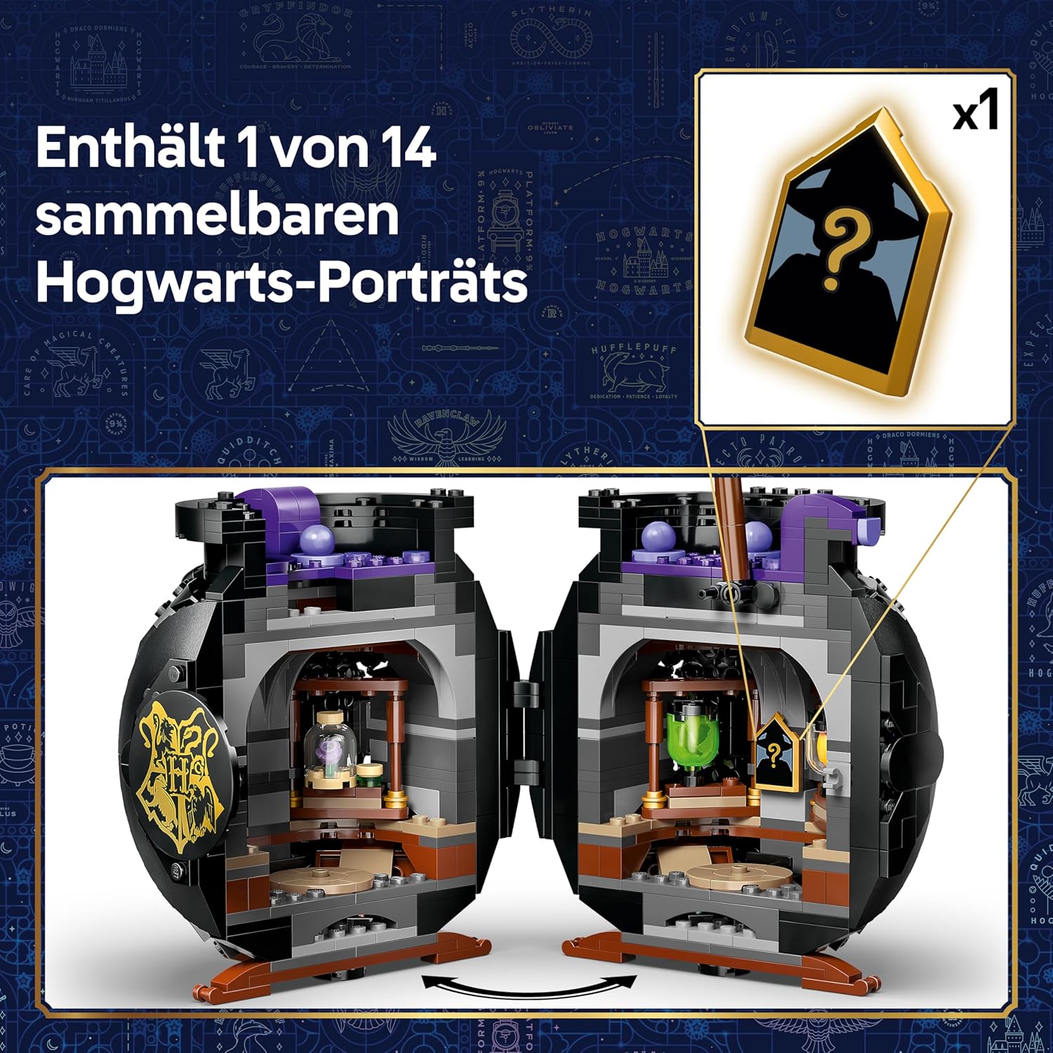 - BAUSET MIT GEHEIMEN KLASSENZIMMER: Durch Drehen des Rührstabs wird ein versteckter Raum freigelegt – mit Tischen, einer Tafel, Zaubertrankflaschen und LEGO Zutaten für Wolfsbann-, Vielsaft- und Liebestränke