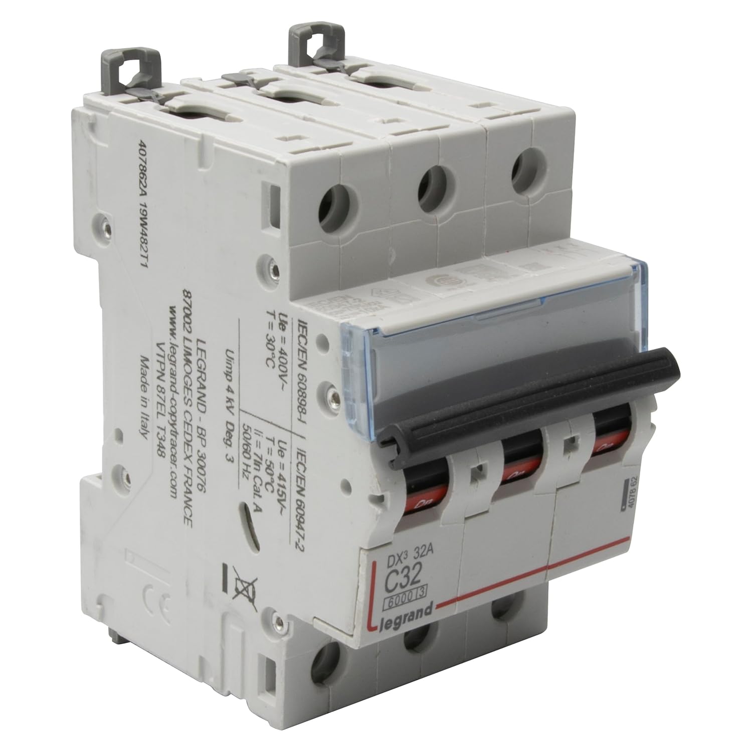 - 3-polig; Stromstärke von 32 Ampere (A) und Spannung 400 Volt (V)
