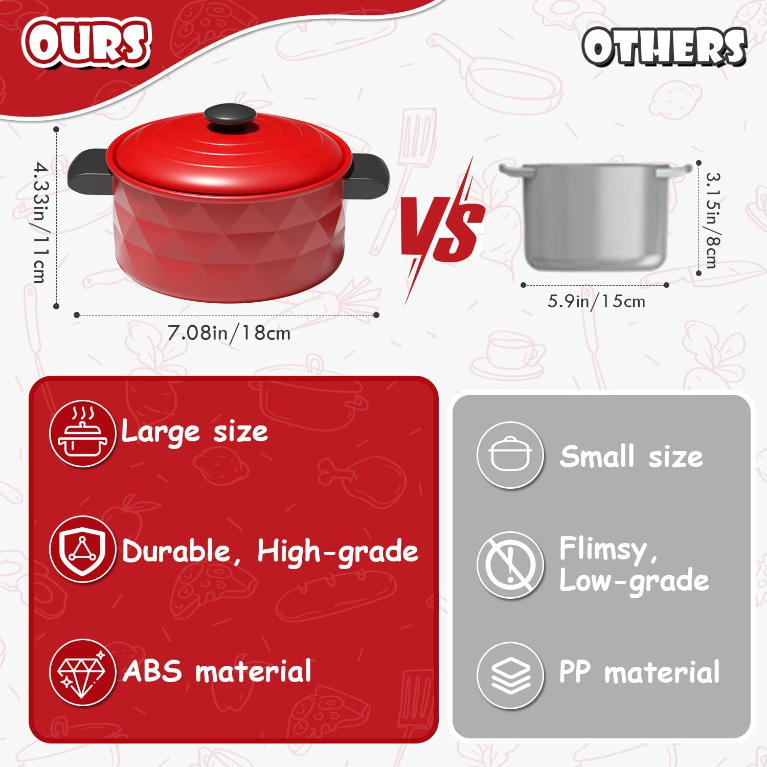 - 【Realistisch und sicher】- Diese zubehör kinderküche töpfe bestehen aus robustem, sturzfestem ABS-Kunststoff, sind leicht zu reinigen und frei von BPA oder schädlichen Chemikalien. Das Messerset ist so konzipiert, dass es sicher und dennoch robust