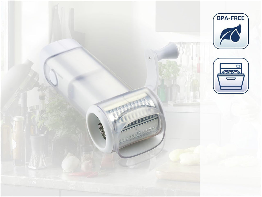 - Leichtes Reiben - die scharfen Klingen der Trommelreibe Reiben Hartkäse, Nüsse, Schokolade oder Parmesan spielend leicht
