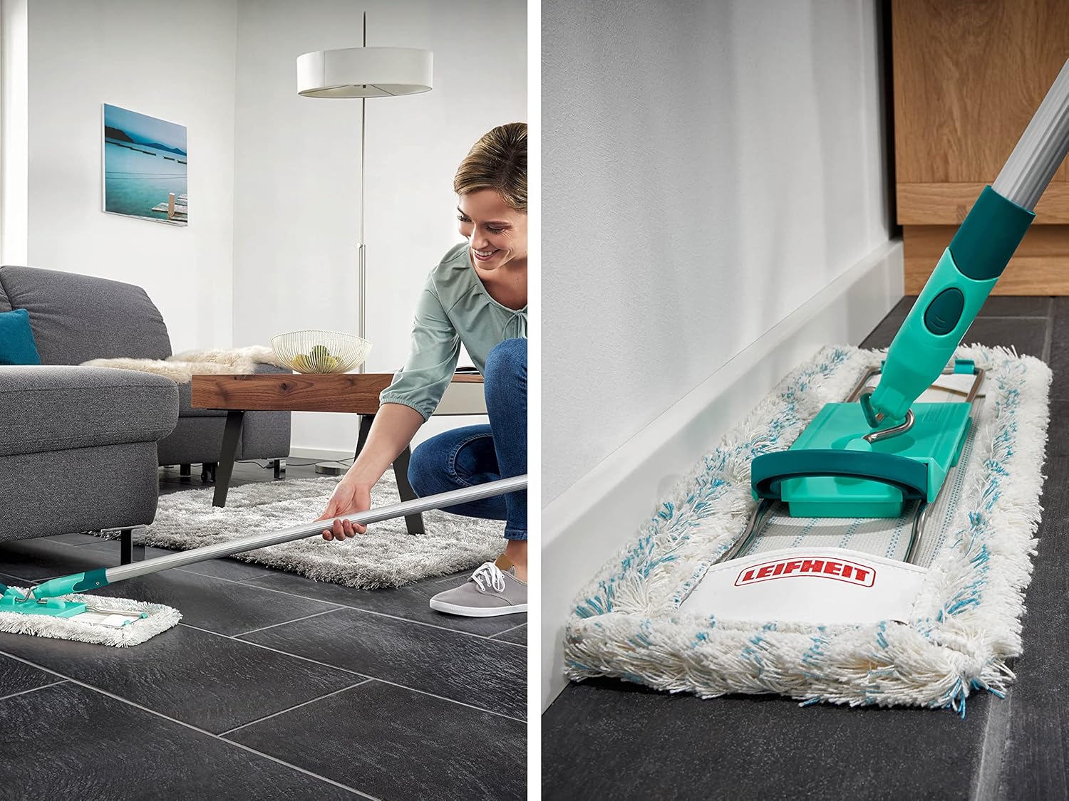 - Mikrofaser-Bezug - Der Leifheit 2-Faser-Wischbezug ist ein Allround-Talent, er löst Schmutz auf Laminat und Steinböden. Feinste Borsten reinigen hartnäckige Verschmutzungen ohne Kraftanstrengung