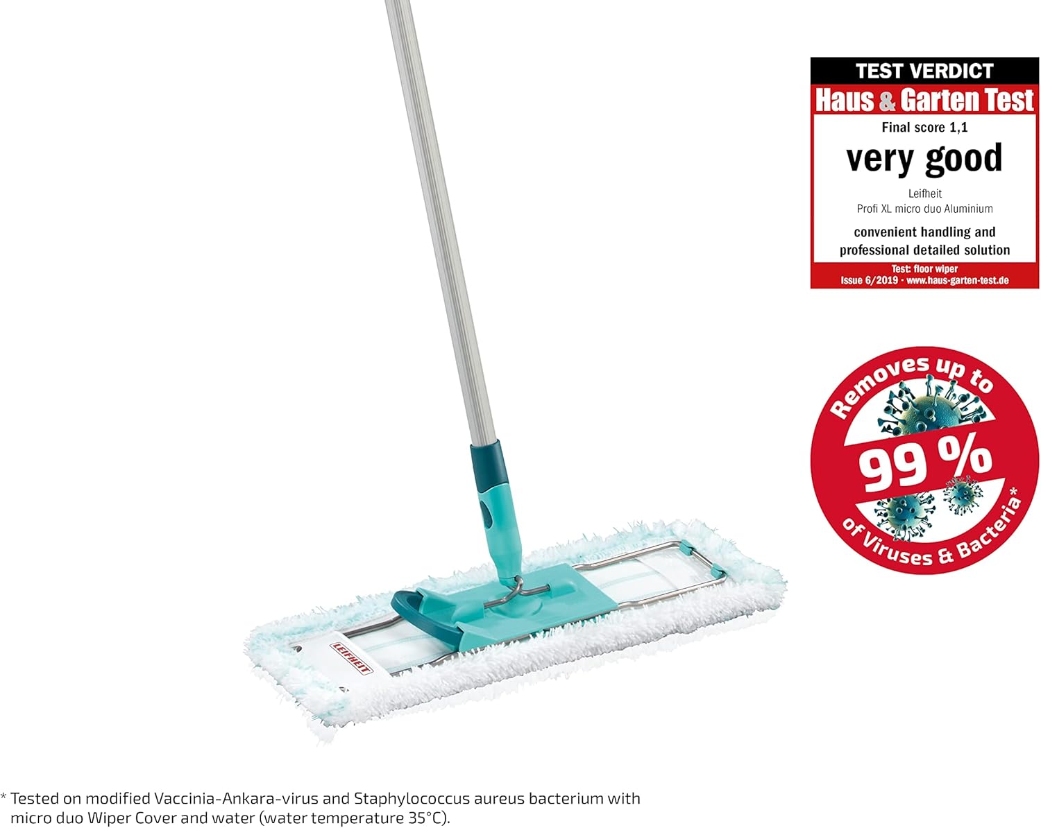 - Lieferumfang - Leifheit Bodenwischer Profi XL micro duo, inkl. Mikrofaser-Wischbezug, Aluminiumstiel 140 cm mit Click-System (nicht kompatibel mit Leifheit Professional-Serie), Art. Nr. 55045