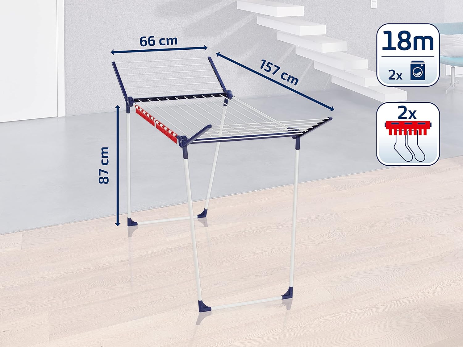 - 18 Leinenmeter - Ganze 18 Meter Trockenleine bieten viel Raum zum Wäsche aufhängen. An den 2 Kleinteilehaltern können Socken oder Slips platzsparend befestigt werden