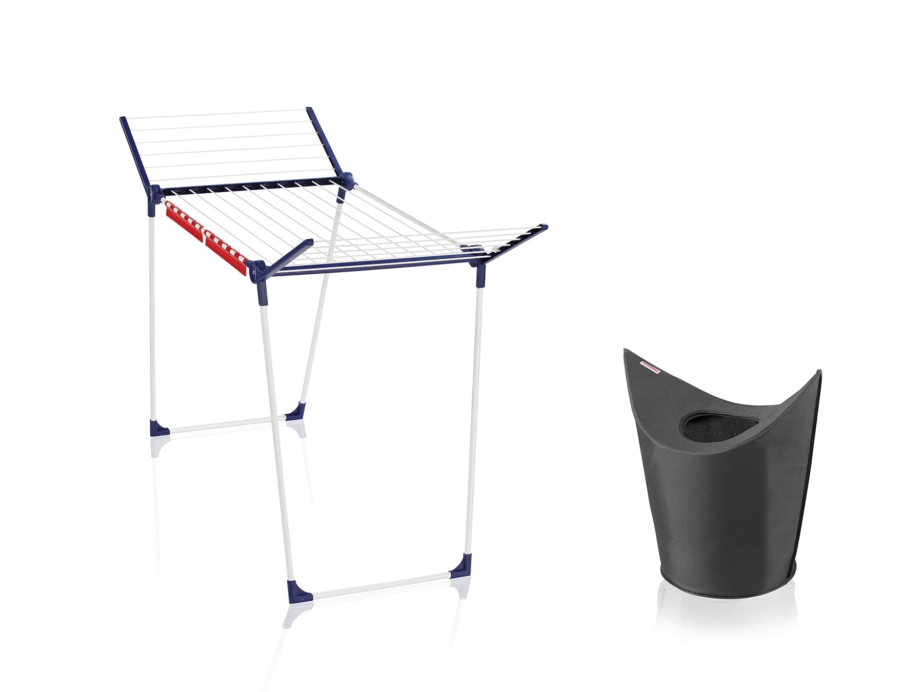 - Lieferumfang - Leifheit Standtrockner Pegasus 180 Solid, 157 x 66 x 87 cm, rostfrei, 2 Kleinteilehalter, 1 Wäschesammler 60x35x80 cm, Made in Europe, Artikelnummer 81639