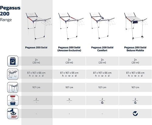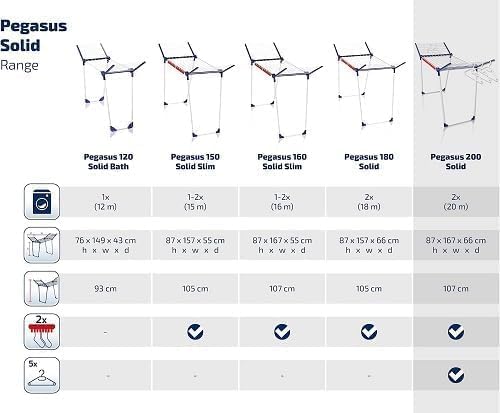 - Lieferumfang - Leifheit Wäscheständer Pegasus 200 Solid, 167 x 66 x 87 cm, gross und stabil, zwei Kleinteilehalter (Sockenhalter), fünf windfeste Kleiderbügel, Made in Europe, Artikelnummer 81520