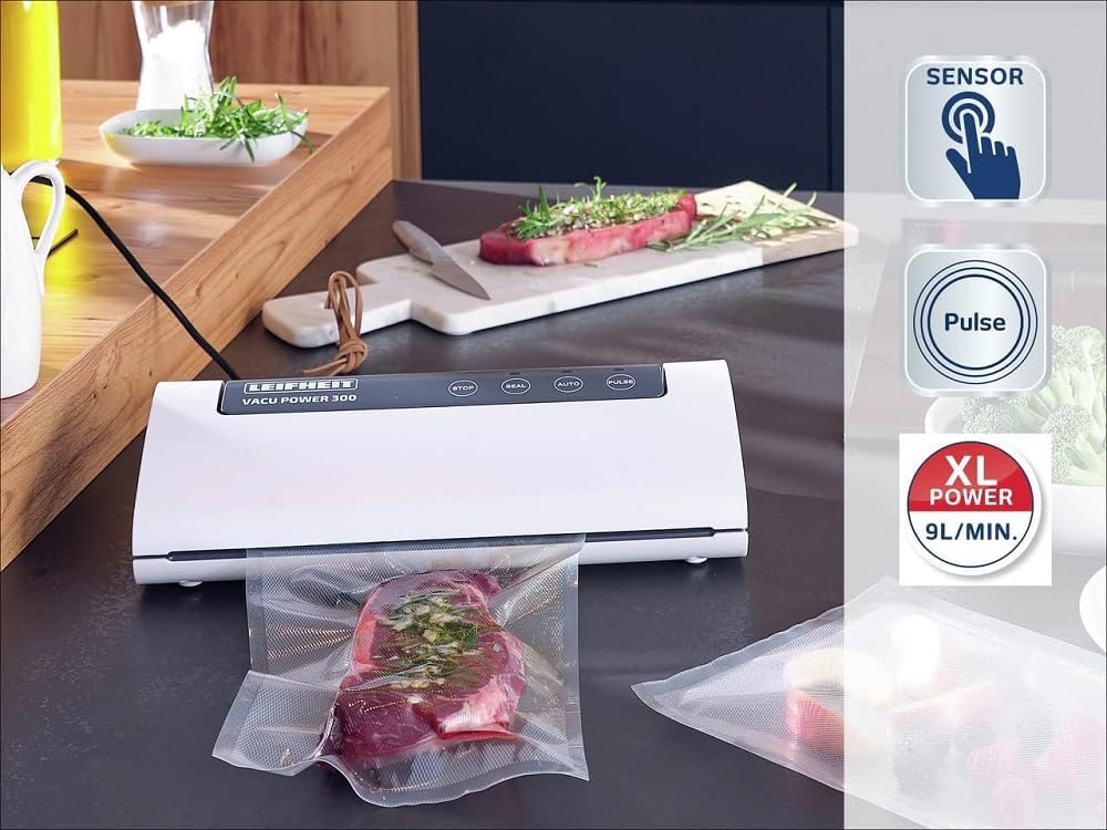 - Länger frisch - mit dem Leifheit Vakuumier-Gerät können Lebensmittel bis zu 8x länger haltbar gemacht werden, ganz ohne Konservierungsstoffe. Vitamine, Nährstoffe und Aromen bleiben erhalten