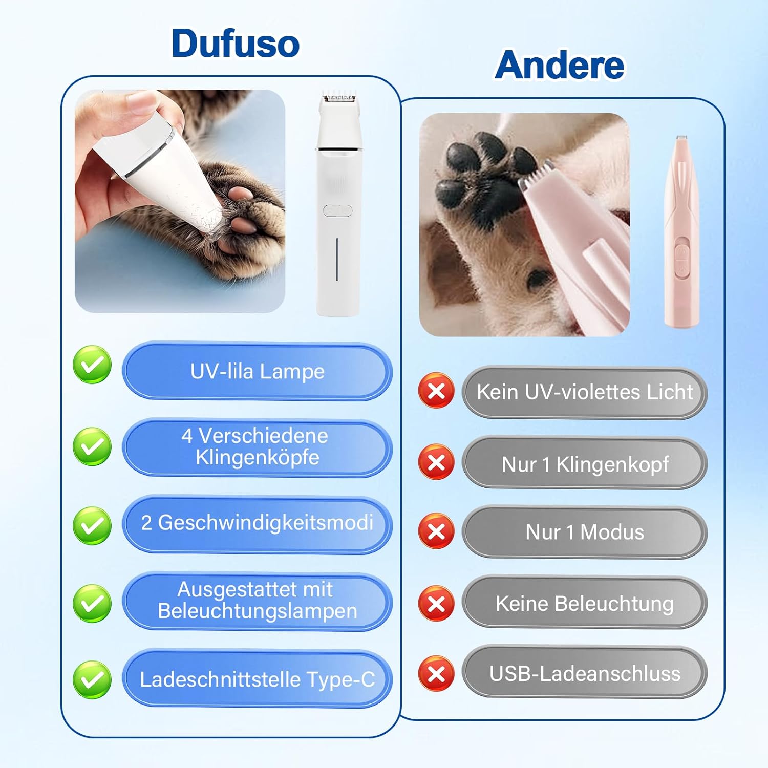 - đșăSicheres,effektives & PrĂ€zises TrimmenăDie scharfen Keramikklingen des Katzentrimmers bieten eine hervorragende schneidleistung, ohne sich auch nach lĂ€ngerem Gebrauch zu erhitzen, was die Beschwerden des Tieres erheblich reduziert. Ideal zum
