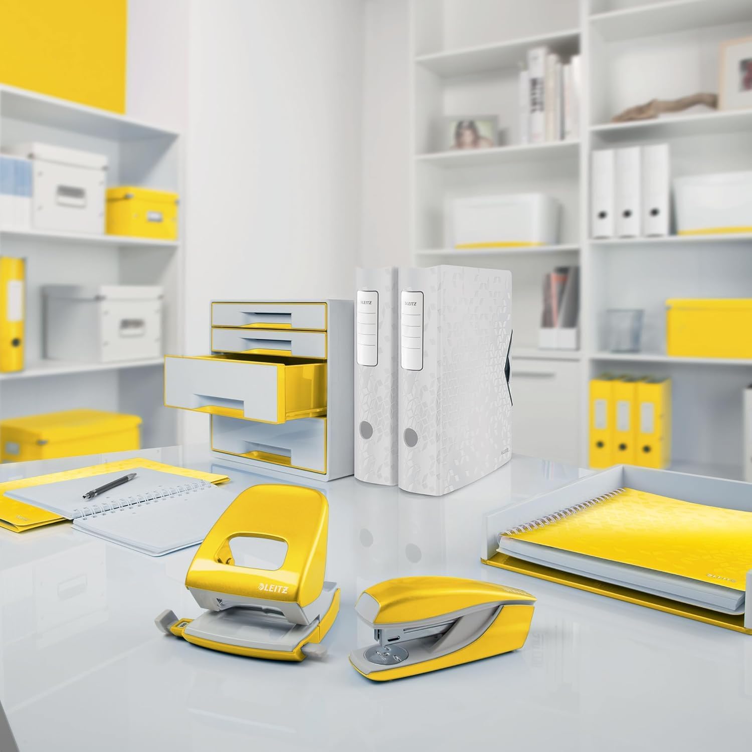 - Lieferumfang: 1 x Leitz Briefkorb, A4, Masse (BxHxT): 26,7 x 4,9 x 33,6 cm, Farbe: Perlweiss/Gelb, Gewicht: 376 g, WOW, 53611016