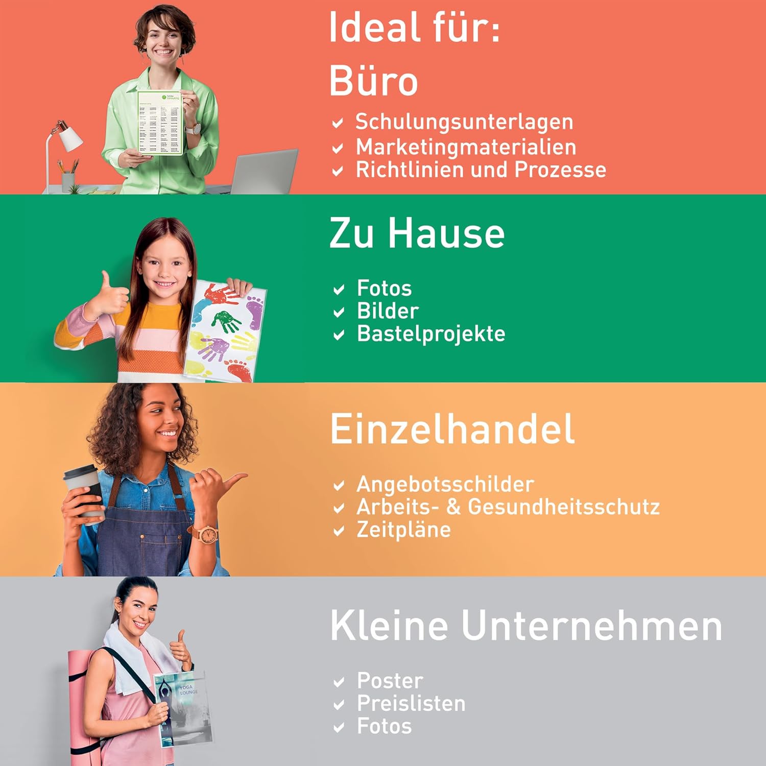 - Verbesserte Farbwiedergabe: Ein glänzendes Finish sorgt dafür, dass Ihre Dokumente auch unter der Folie noch farbecht zum Strahlen kommen - Laminieren im Büro, im Geschäft oder in der Schule