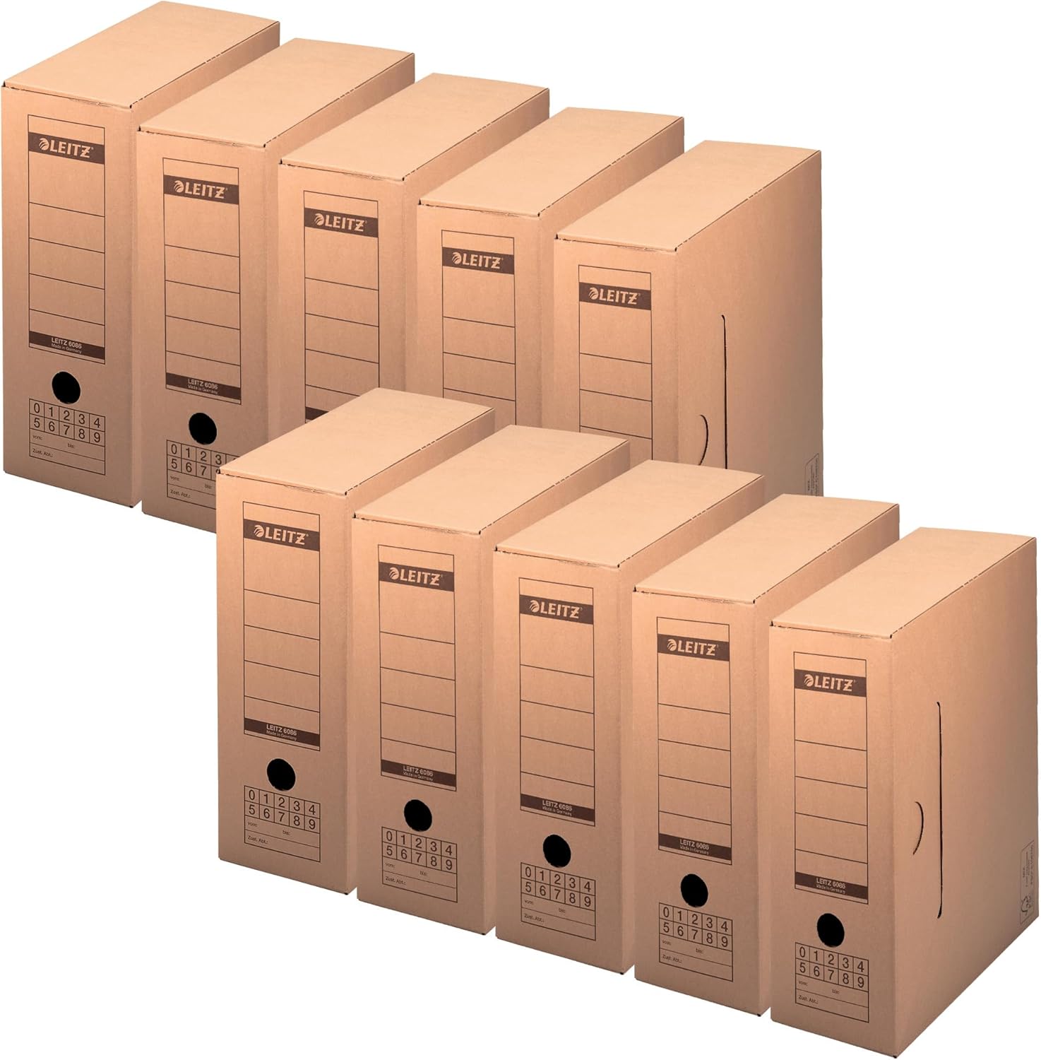 - Lieferumfang: 10 x Leitz Archivschachteln A4 mit 120 mm Rückenbreite, Masse (BxHxT): 120 x 270 x 325 mm, Gewicht: 180 g, Braun, 60860000
