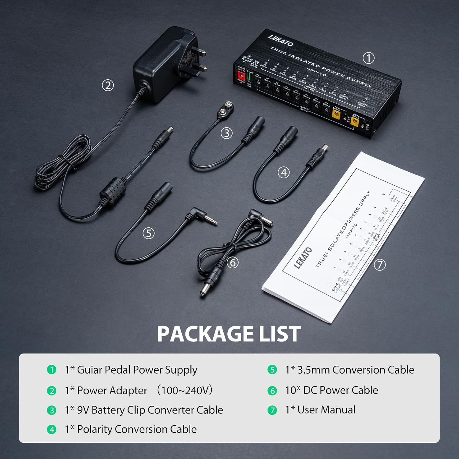 - ⚡【10 ISOLIERTE AUSGÄNGE】LEKATO Gitarren-Netzteil hat 10 isolierte DC-Ausgänge für 4 verschiedene Spezifikationen, die 7 Wege 9V 300mA, 2 Wege 9V 500mA, 1 Weg 9V/12V/18V 500mA umfassen. Jeder Kanal Ausgänge unabhängig voneinander, ohne sich