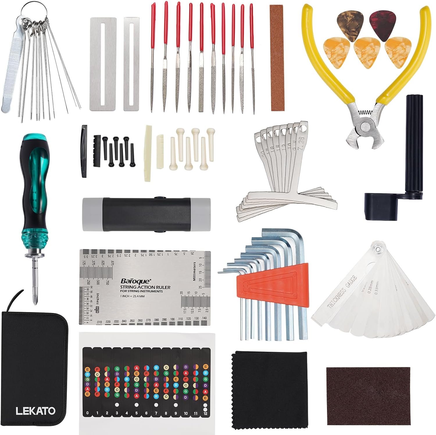 LEKATO Gitarre Reparatur Set, 72Stk Gitarren Pflege Wartung Zubehör mit Brückenstifte Gitarrensattel