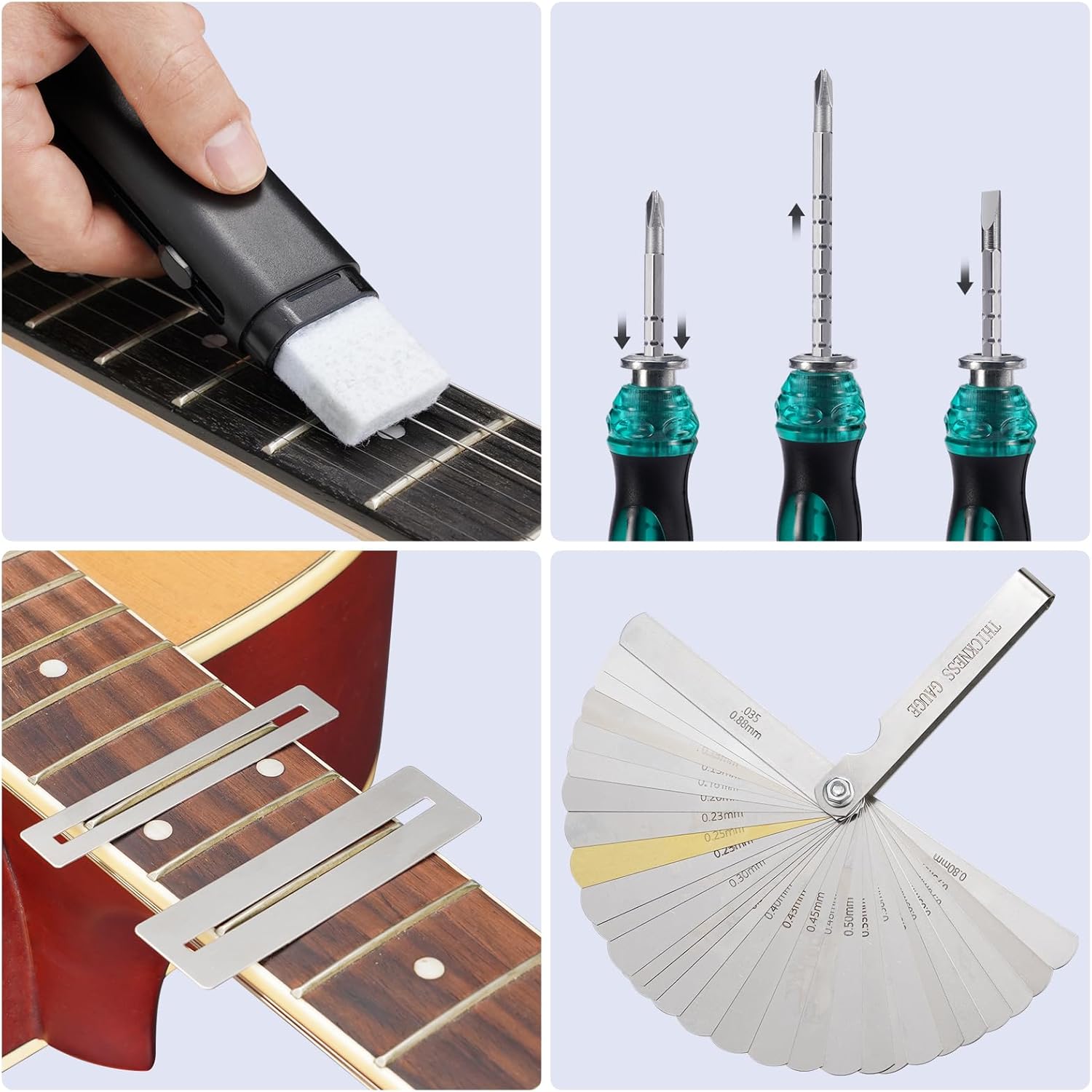 • 𝐔𝐧𝐯𝐞𝐫𝐳𝐢𝐜𝐡𝐭𝐛𝐚𝐫𝐞𝐬 𝐆𝐢𝐭𝐚𝐫𝐫𝐞𝐧-𝐒𝐞𝐭𝐮𝐩-𝐒𝐞𝐭 𝐟ü𝐫 𝐄𝐢𝐧𝐬𝐭𝐞𝐢𝐠𝐞𝐫: Zu den 72-teiligen Gitarrenwerkzeugen gehören Stegstifte,