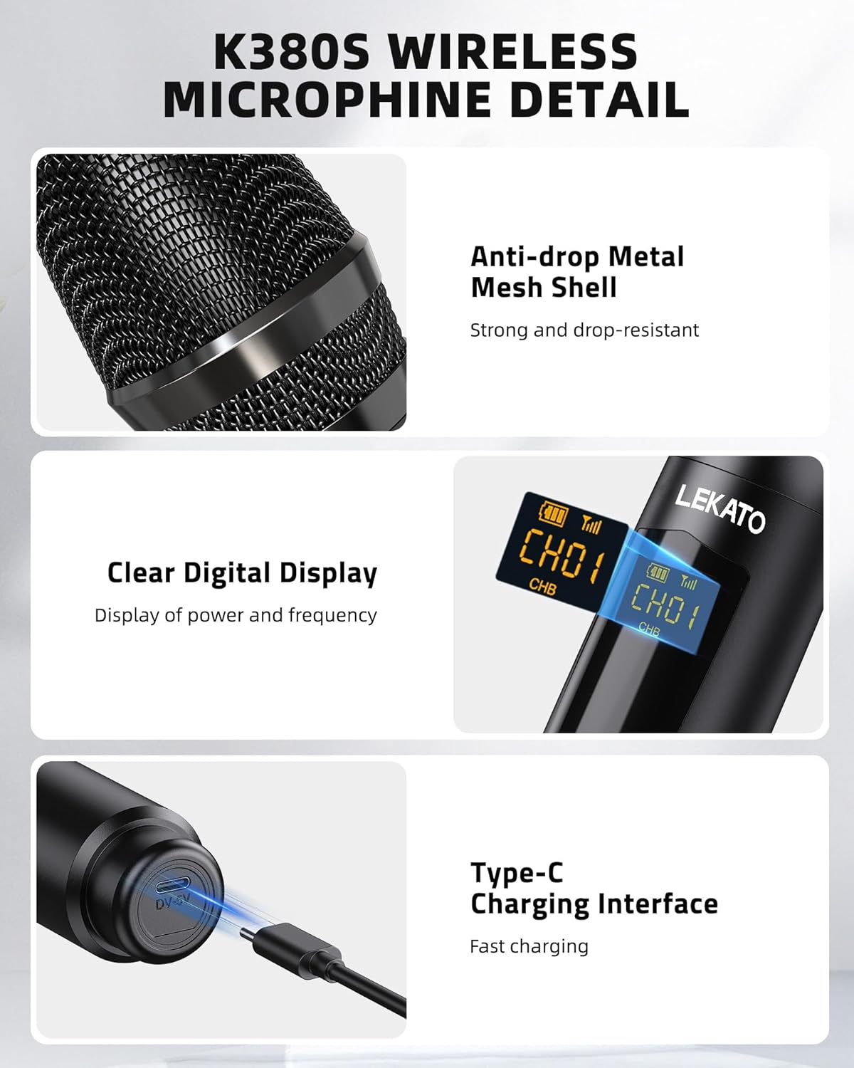 - Kristallklare Audioqualität: Liefert professionellen Klang mit Hi-Fi-Audioübertragung, um sicherzustellen, dass Ihre Stimme klar und ohne Störungen aufgenommen wird. Dieses kabellose Mikrofon ist perfekt für Singen, Karaoke zu Hause, Kirche,