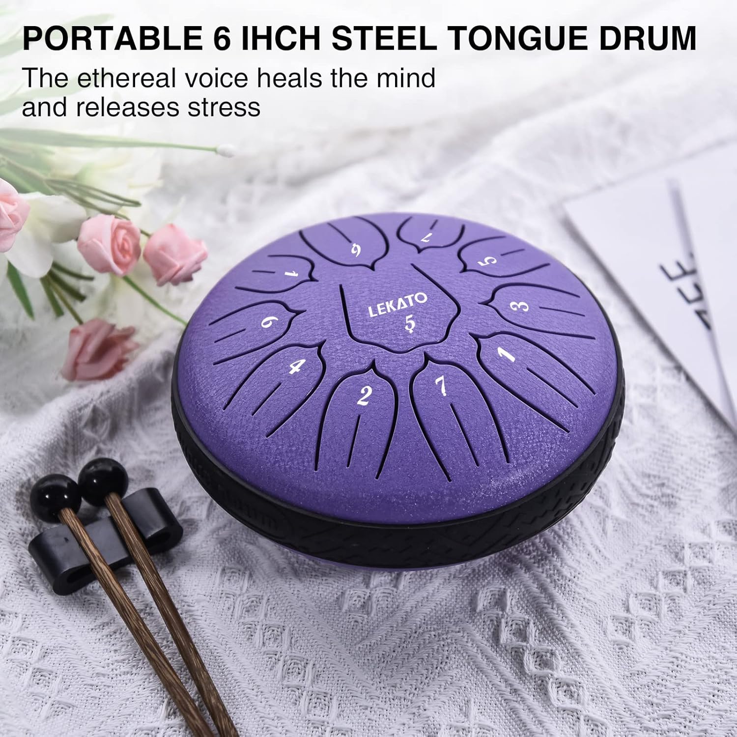 • đŸ„ă€6 Zoll 11 Töne】Die steel tongue drum hat ein breites Spektrum von 11 Tönen in der Tonart D-Dur und produziert einen sauberen, Ă€therischen und Buddha-Ă€hnlichen Klang. Weit verwendet fĂŒr Meditation, Yoga, musikalische FrĂŒherziehung usw.