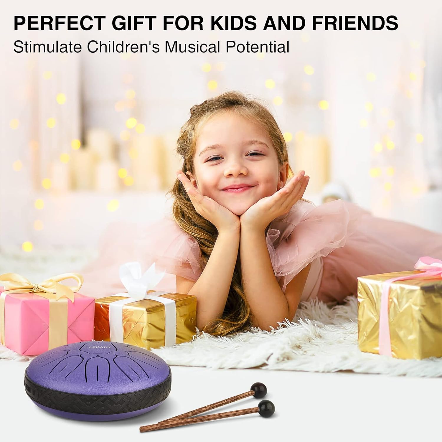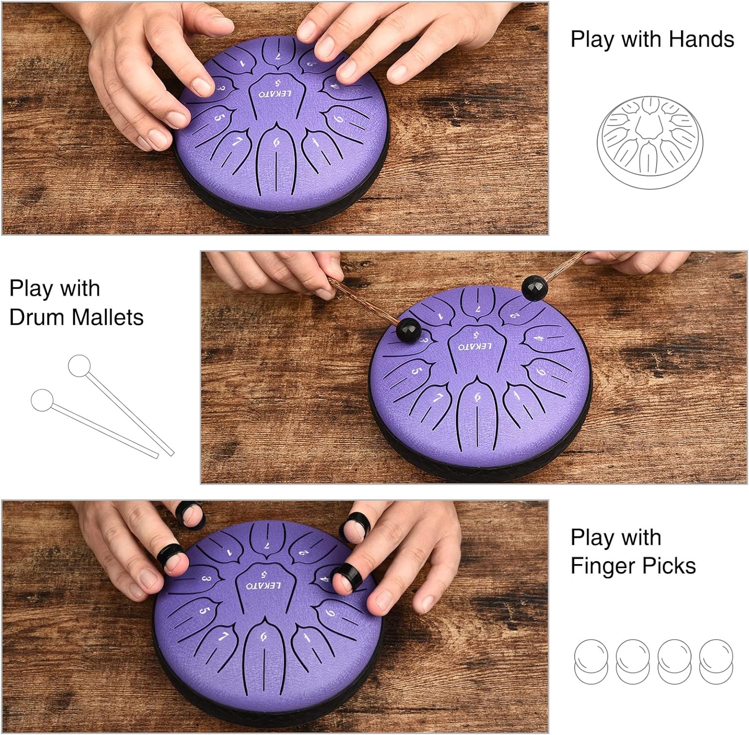 LEKATO Steel Tongue Drum, 6 Zoll 11 Tone D-Dur Zungentrommel Schlagzeug AnfÀnger, Steel Pan Töne Sch