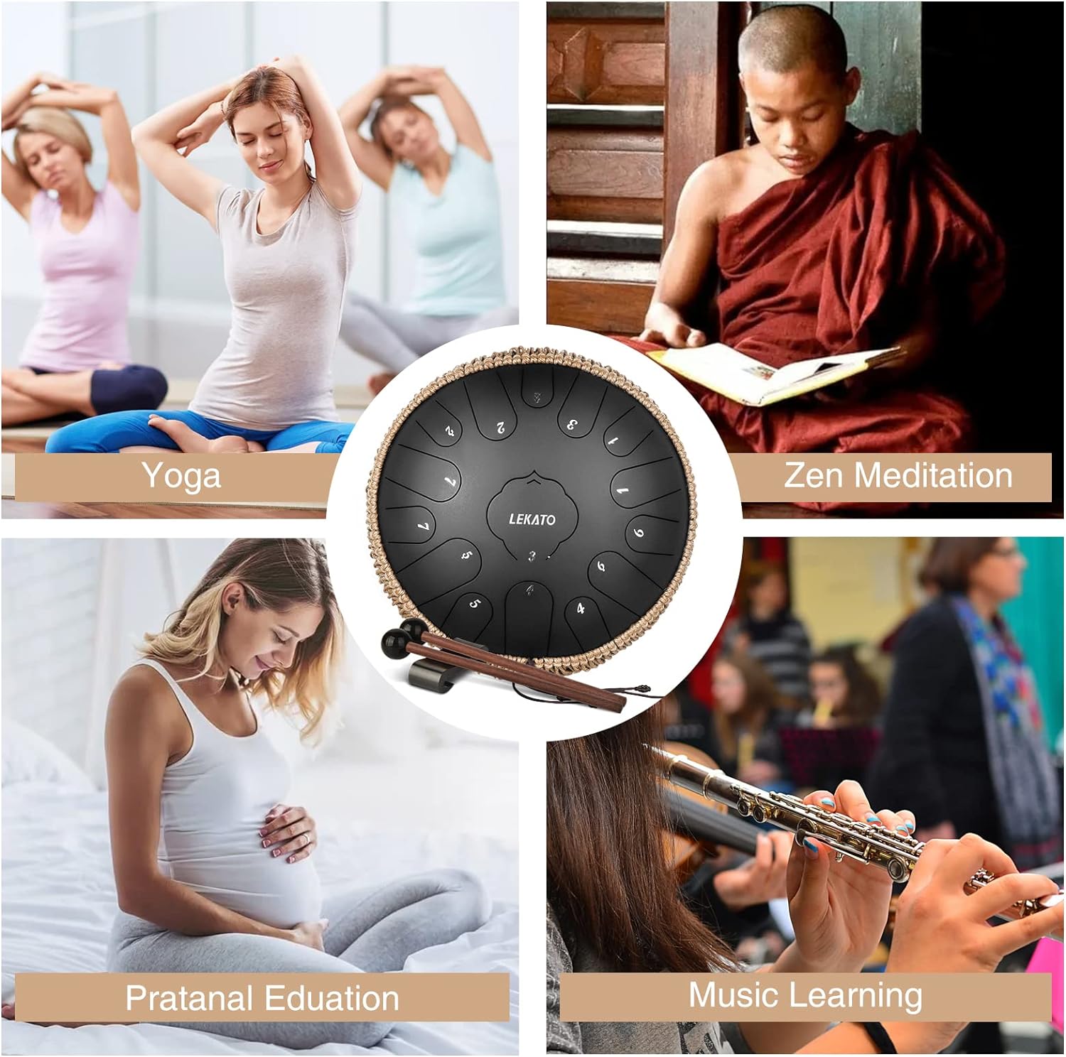 - đ„ăWunderbarer Klangă LEKATO Steel Tognue Drum ist perfekt abgestimmt, um einen sauberen und heilenden Klang zu erzeugen. Weit verbreitet fĂŒr Meditation, Yoga, religiösen Buddhismus, perfekt fĂŒr persönliche Entspannung und Heilung