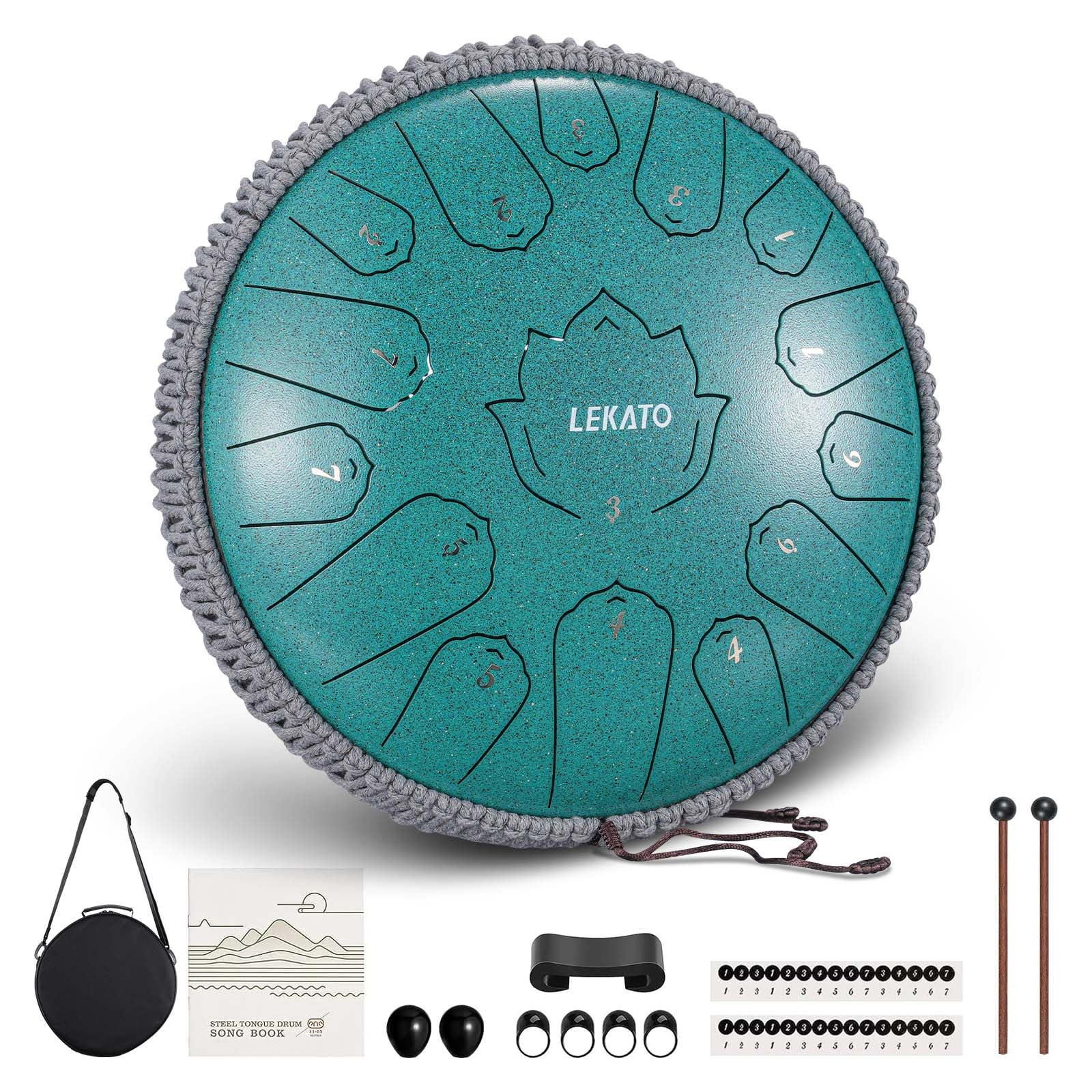 - SIE ERHALTEN: 1 × 15 Noten 13 Zoll Stahlzungentrommel, 1 × Paar Trommelschlägel, 4 × Fingerpicks, 1 × Liederbuch, Tonaufkleber, 1 × Tasche